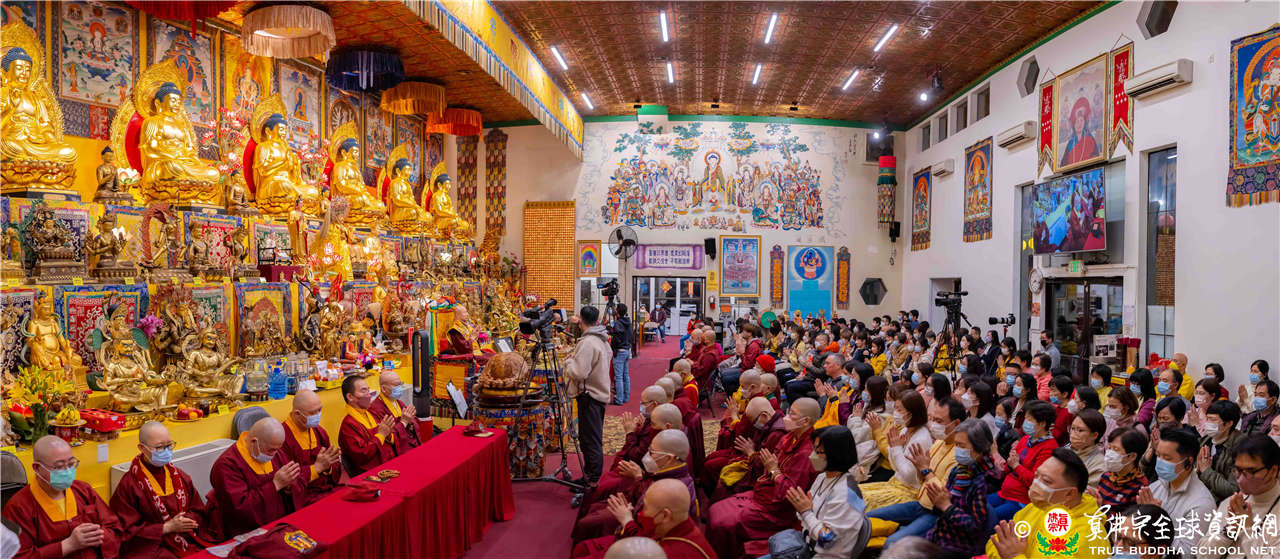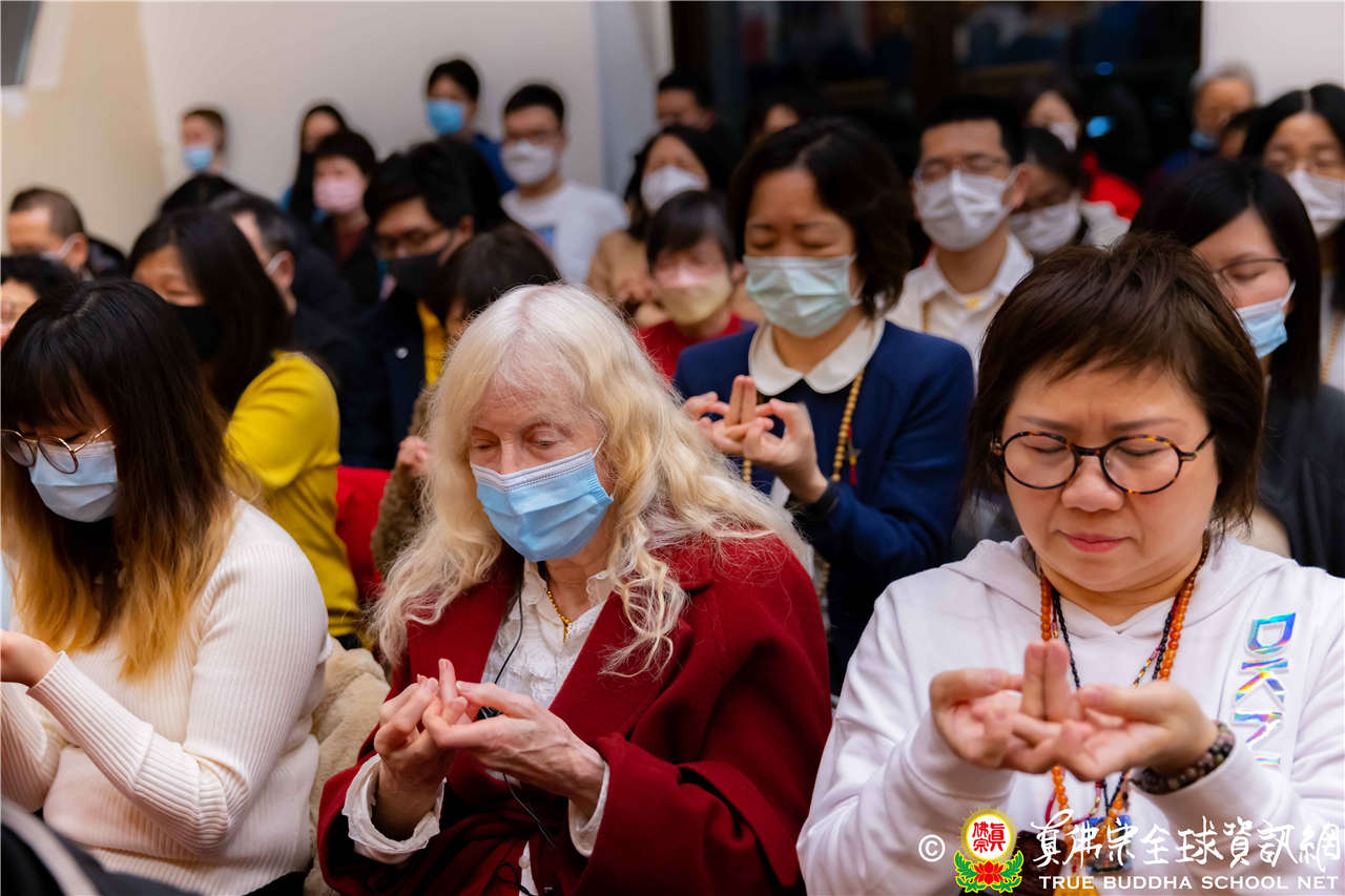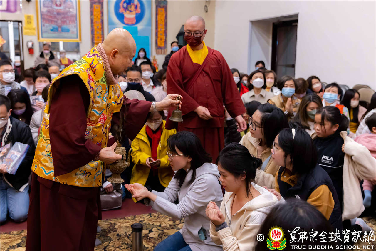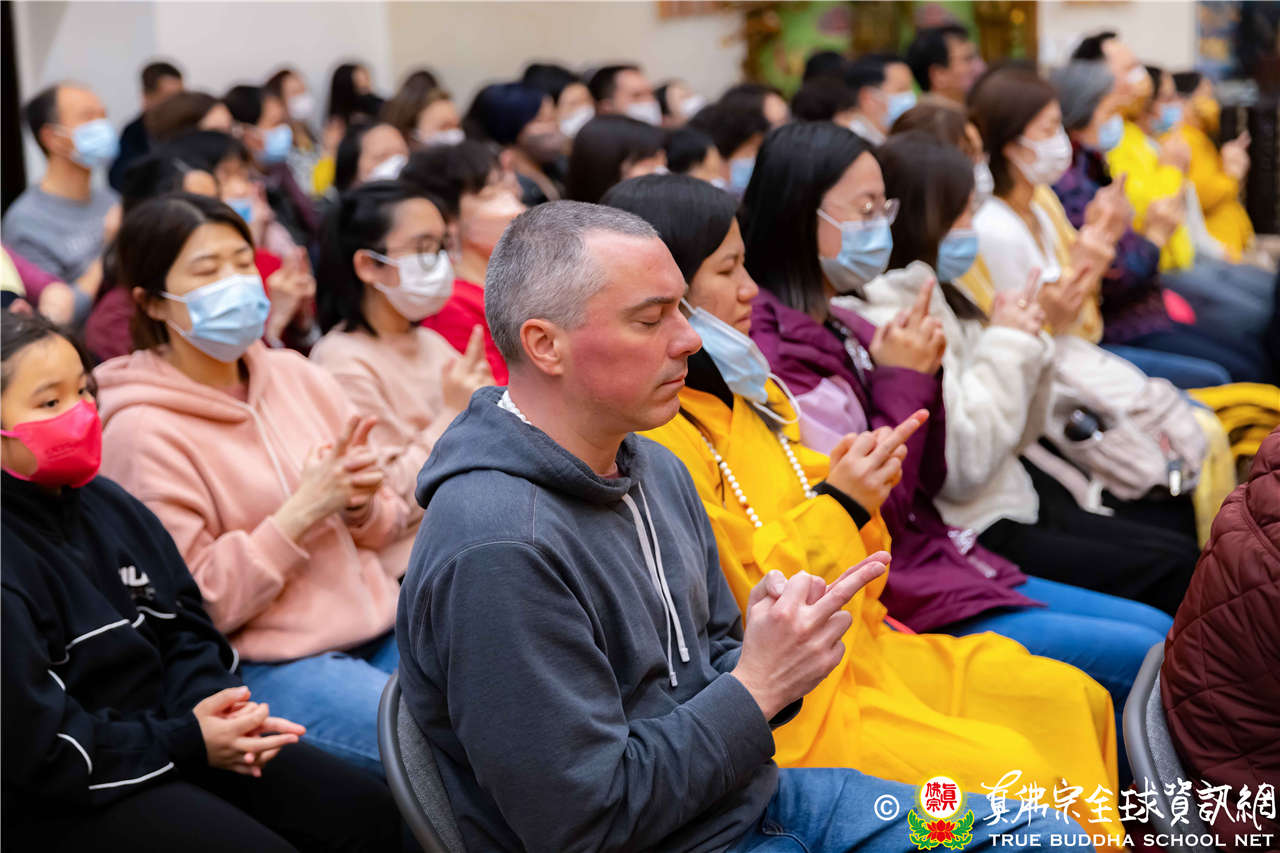 今晚陰雨綿綿,但仍不減四眾弟子想和聖尊蓮生活佛盧勝彥一齊同修地藏王菩薩本尊法的精進心,更有淨印雷藏寺蓮雄長老帶團前來朝聖,西雅圖雷藏寺大殿裡座無虛席。同修前,來自世界各地的弟子們做簡單的自我介紹,其中數位小同門童稚的語音與表情,令人感到非常可親、逗趣。