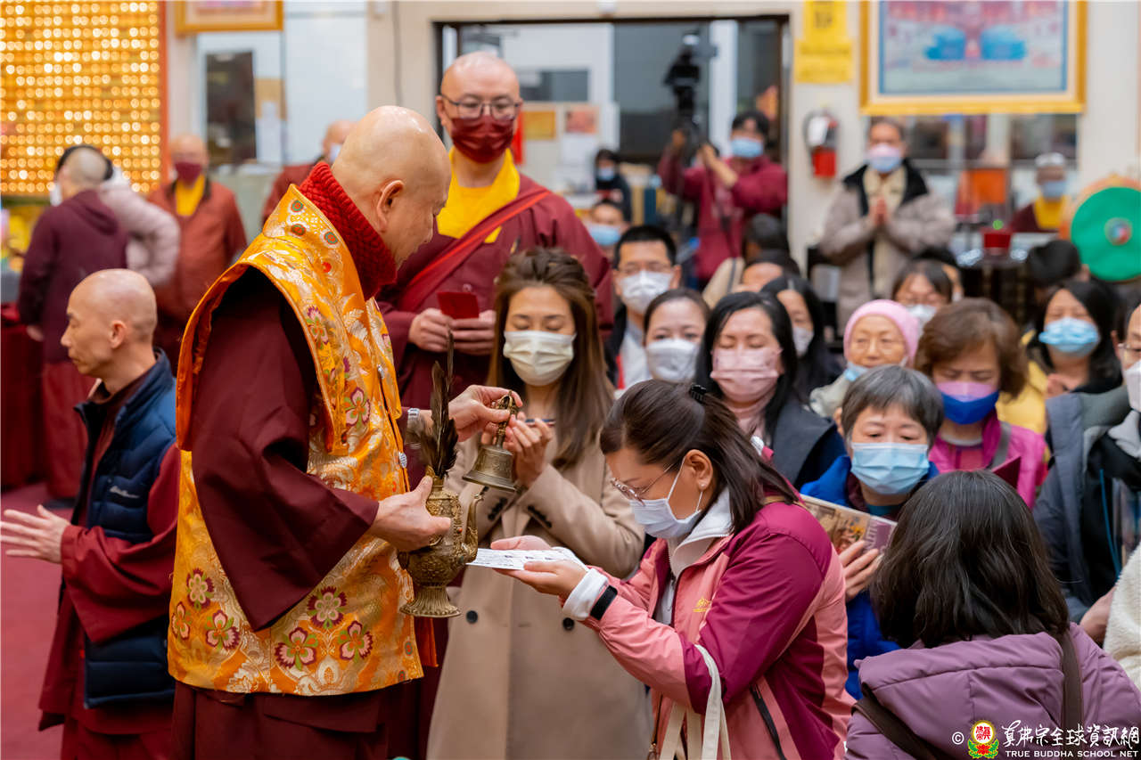 聖尊精妙絕倫的維摩詰所說經開示結束後,慈悲為善信大德做皈依灌頂,加持大悲咒水和開光佛像,並為與會大眾以拂塵摩頂加持。加持結束後,步出廟門,夜色中,法味滿滿的在每一個人的心中流轉不息。