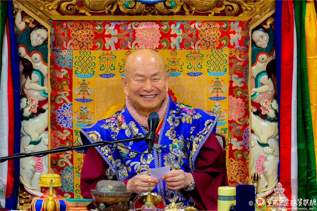 接着法王繼續講解《維摩詰經》〈方便品第二〉:「諸佛諮嗟!弟子、釋、梵、世主所敬。欲渡人故,以善方便,居毗耶離;資財無量,攝諸貧民;奉戒清淨,攝諸毀禁;怡、以忍調行,攝諸恚怒;以大精進,攝諸懈怠…」
