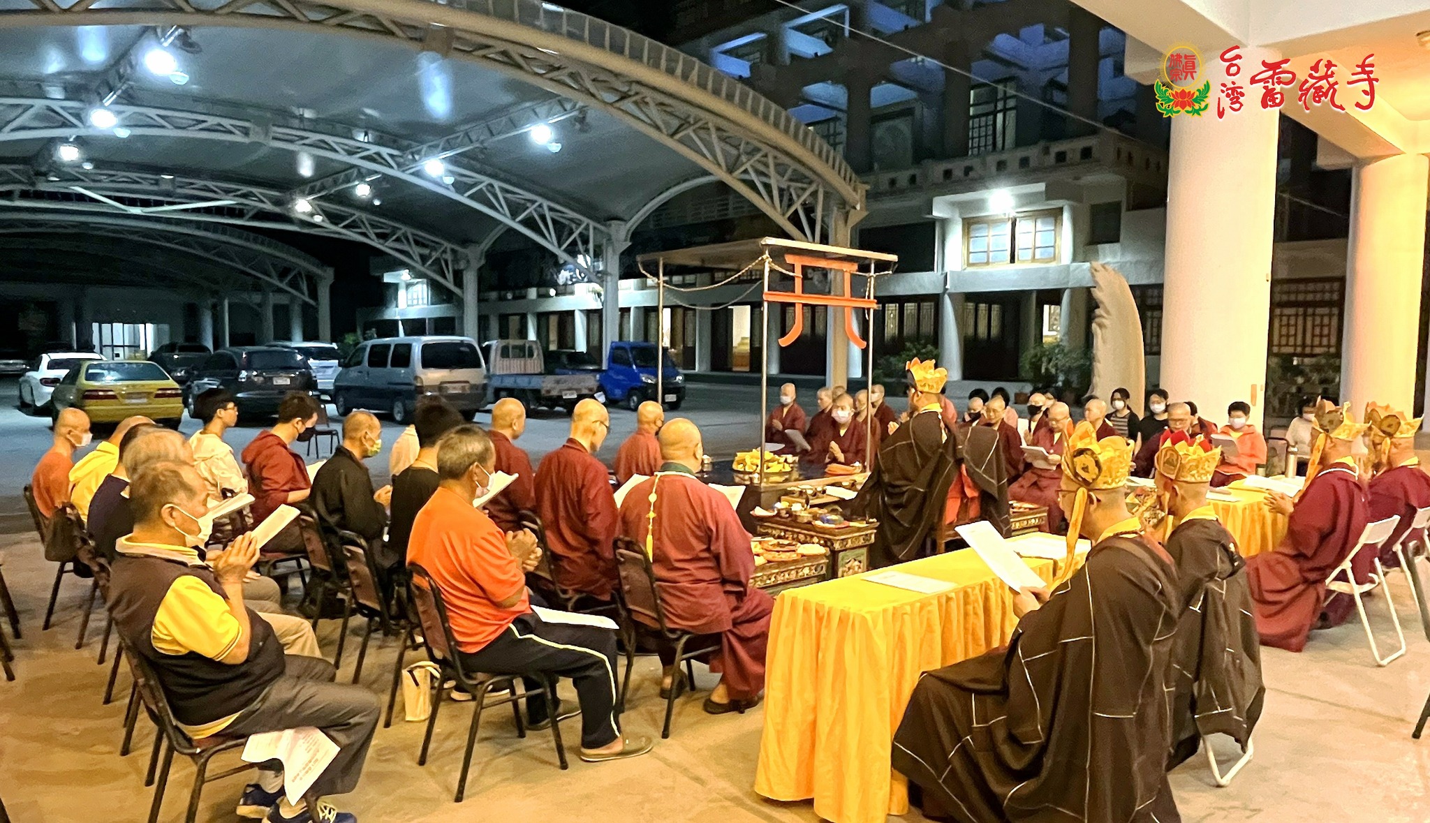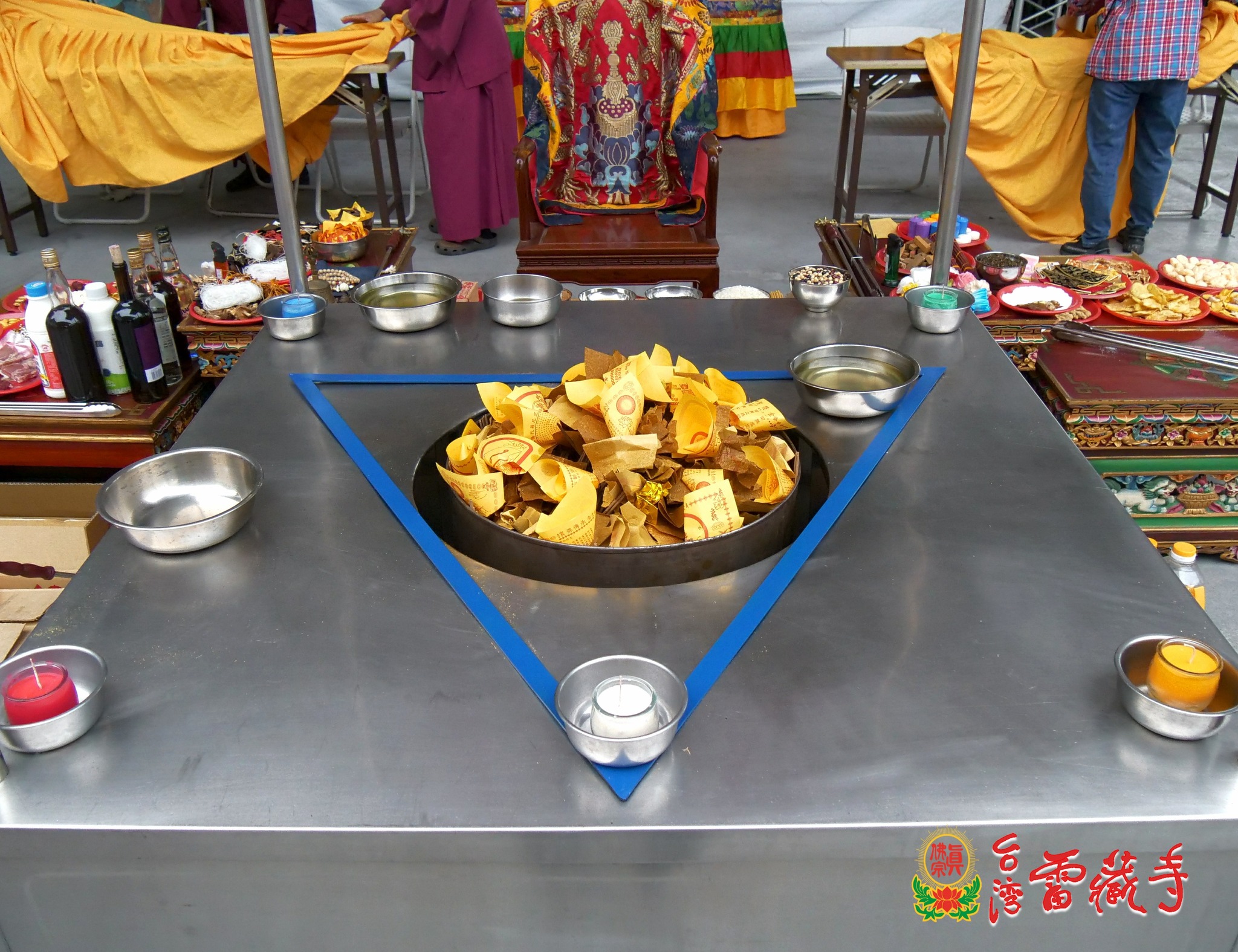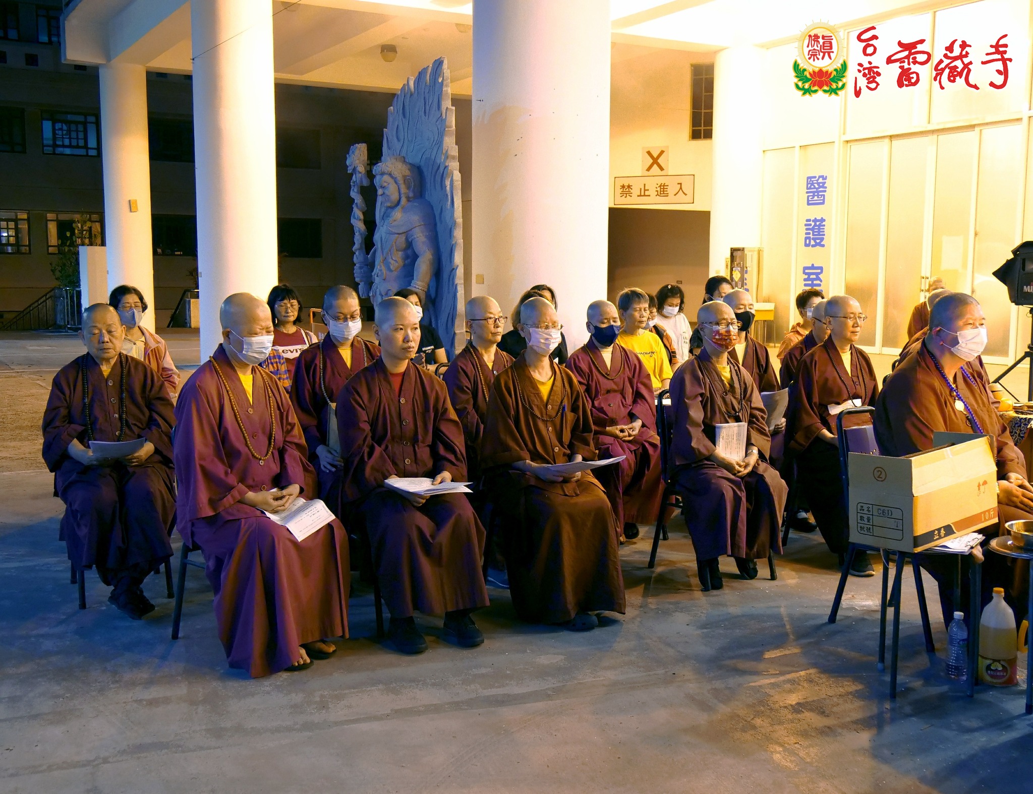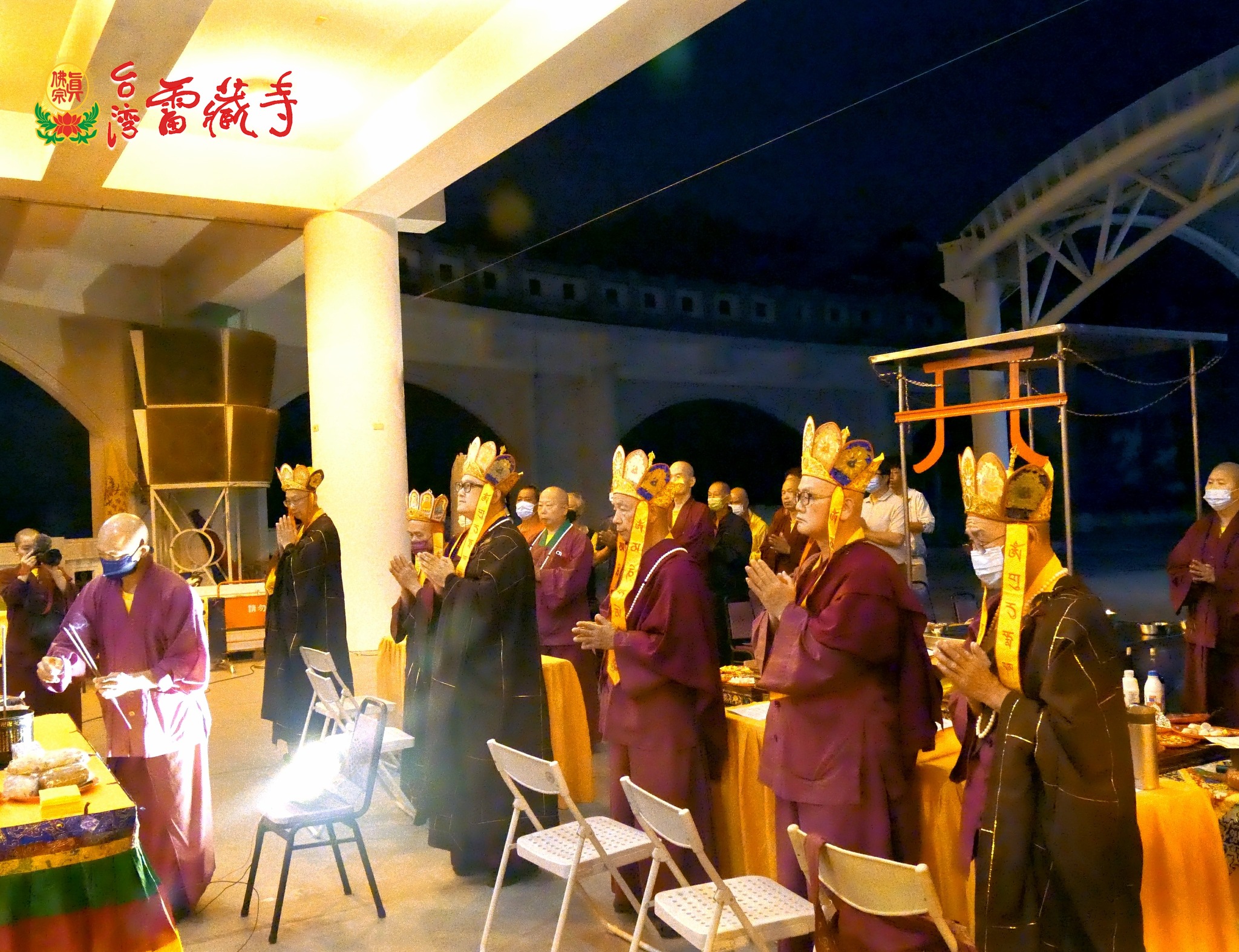 寺方先前於5月8日召開的寺務會議中討論到此事,決議由寺裡長老及上師們分別主壇護摩火供,台灣雷藏寺全體僧團,包括上師、教授師、法師等共同護壇。護摩場地設置在龍邊迴廊,數日前水電組蓮霆法師已經帶領法師們固定鋼架,架設燈光,佈置莊嚴的皈依境壇城。蓮國教授師則協助法師們準備火供所需的各種器具、法器及琳瑯滿目的供品。