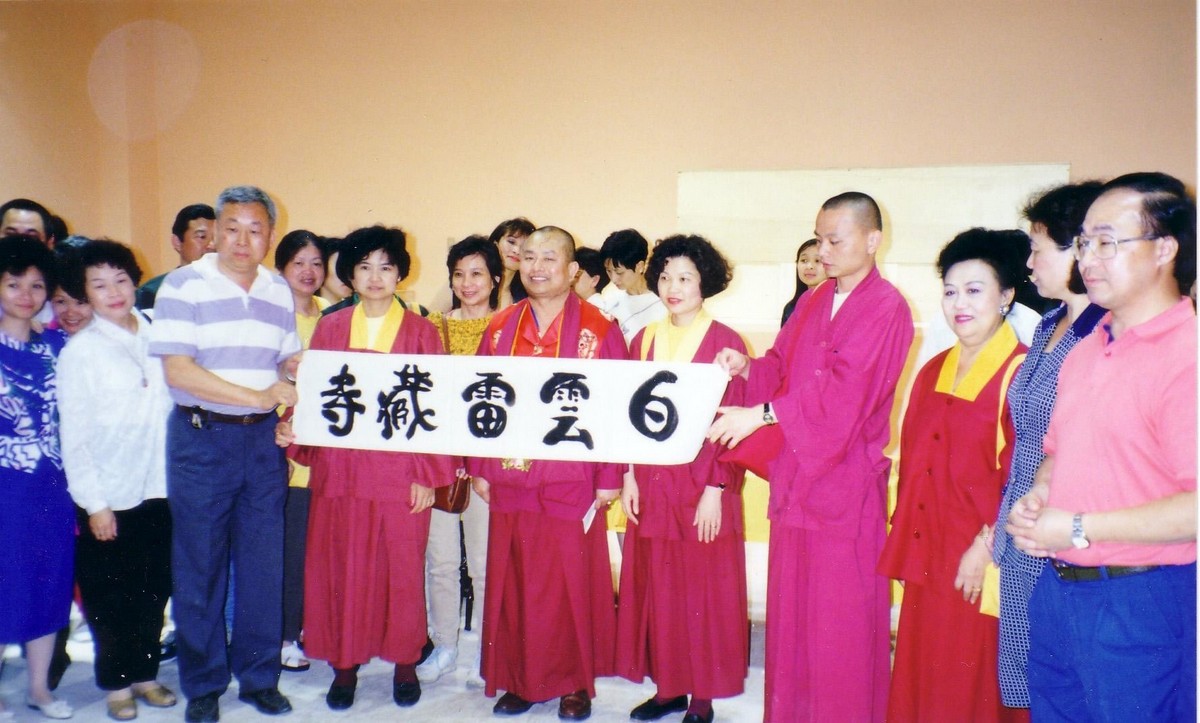 1994年6月30日聖尊和師母第二次踏足卡城,來到剛建成尚未裝修好的建築視察,聖尊親筆賜予「白雲雷藏寺」横匾。