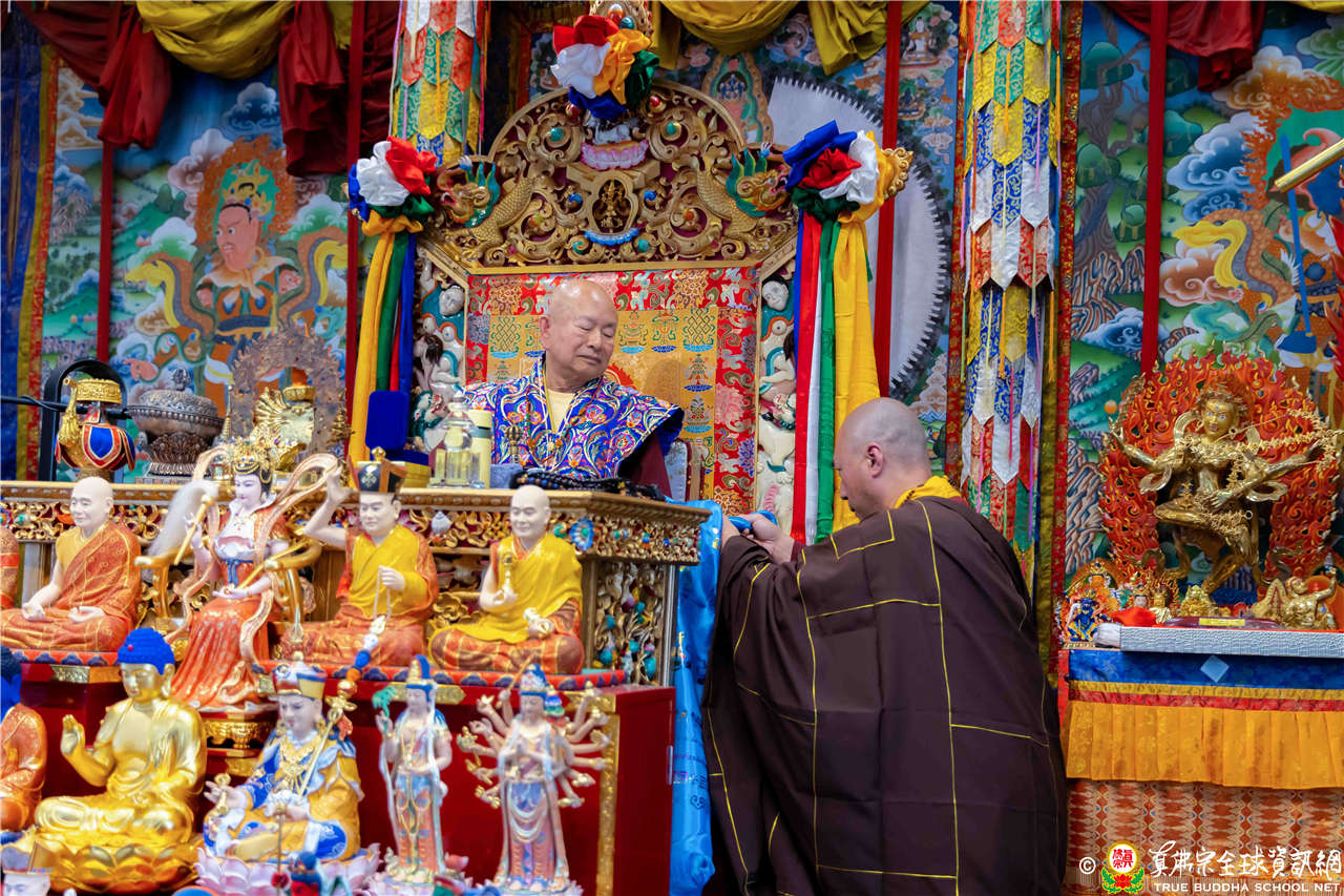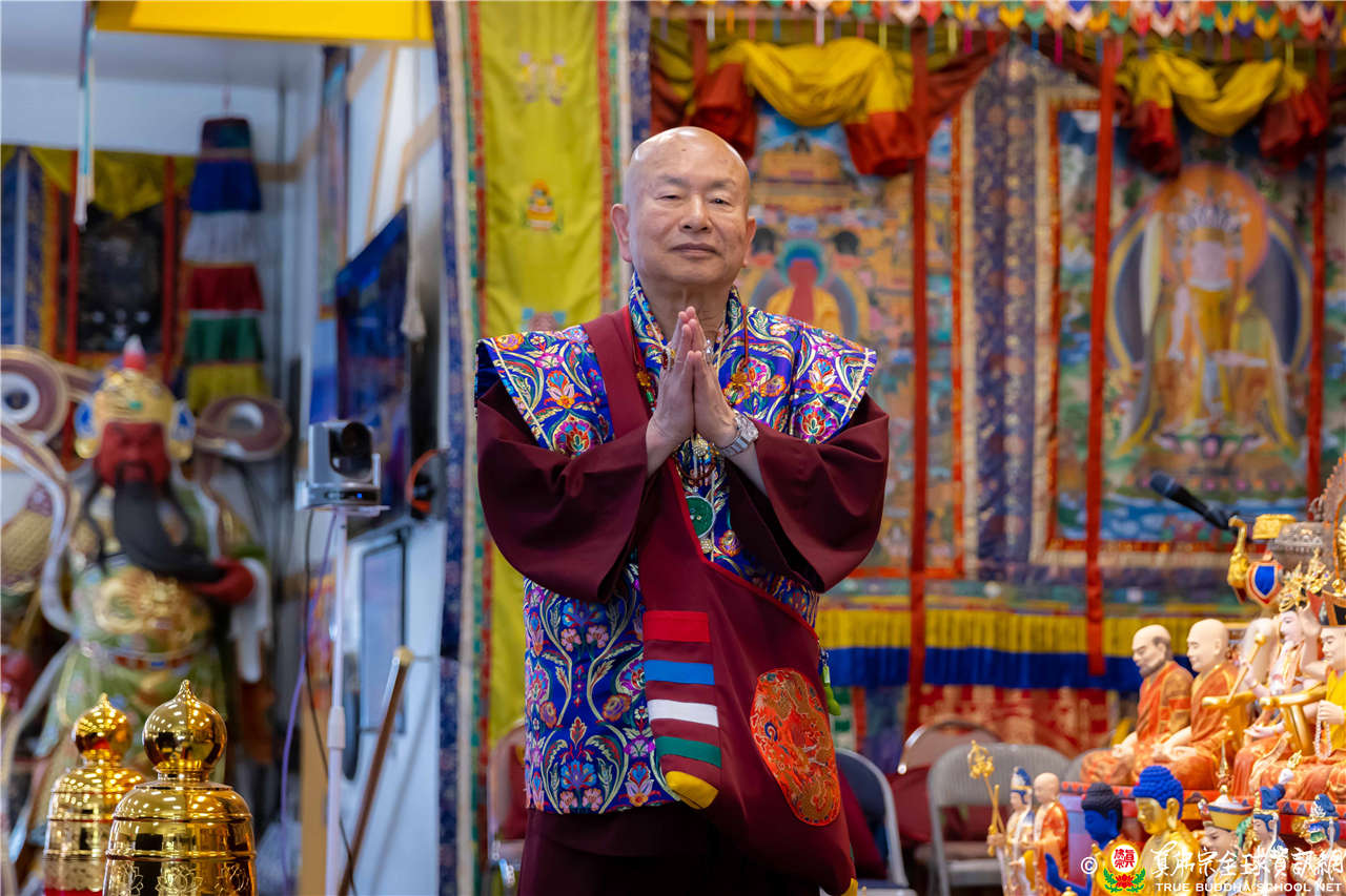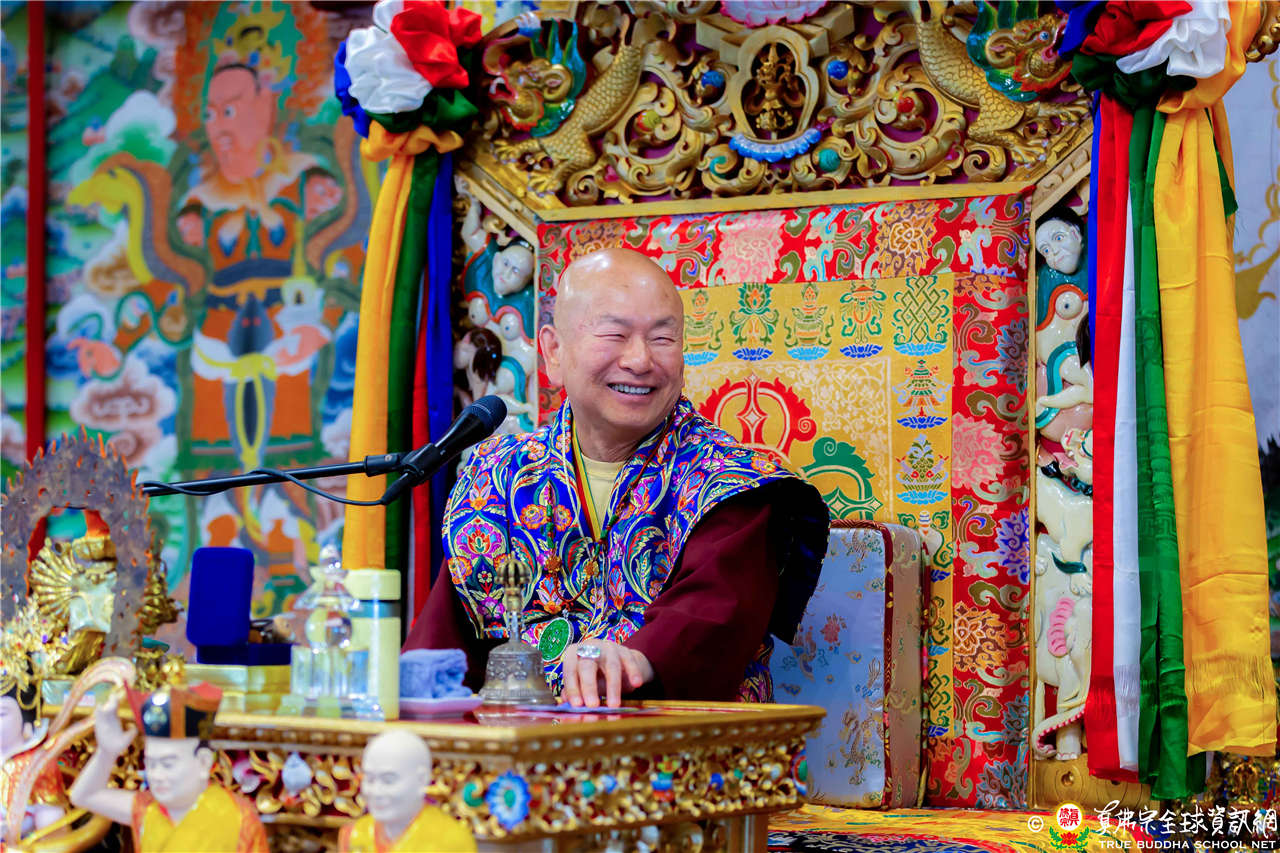 法王開示今日護摩主尊大威德金剛非常重要,是宗喀巴大師的護法,也是法王的護法。彩虹雷藏寺金剛明王殿中央的一尊也是大威德金剛。祂的威力無窮,可降服諸魔,亦稱降閻魔尊。祂是阿彌陀佛、文殊師利菩薩、閻魔法王三身合一的大威德金剛,可降服死魔、煩惱魔、天子魔、病魔、五蘊魔。只要祂一出現,任何鬼怪皆無法抵擋,是怖畏金剛。大威德金剛在護法中威力最大,法王首次相應時在真佛密苑,祂出現時,四大海水全部翻滾。