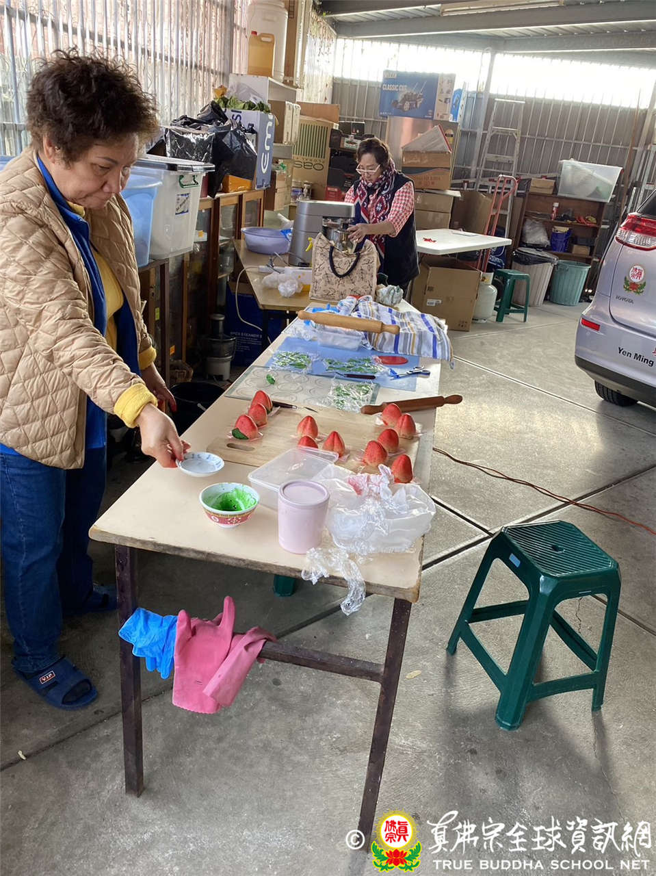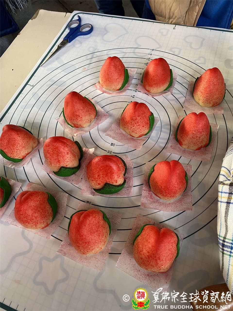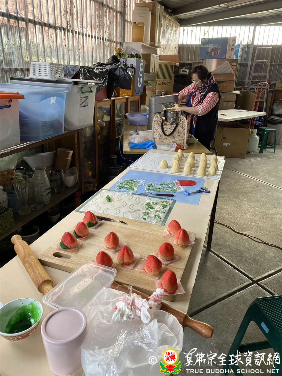 澳洲墨爾本嚴明雷藏寺-同門正在自己動手制作壽桃作為薈供供品