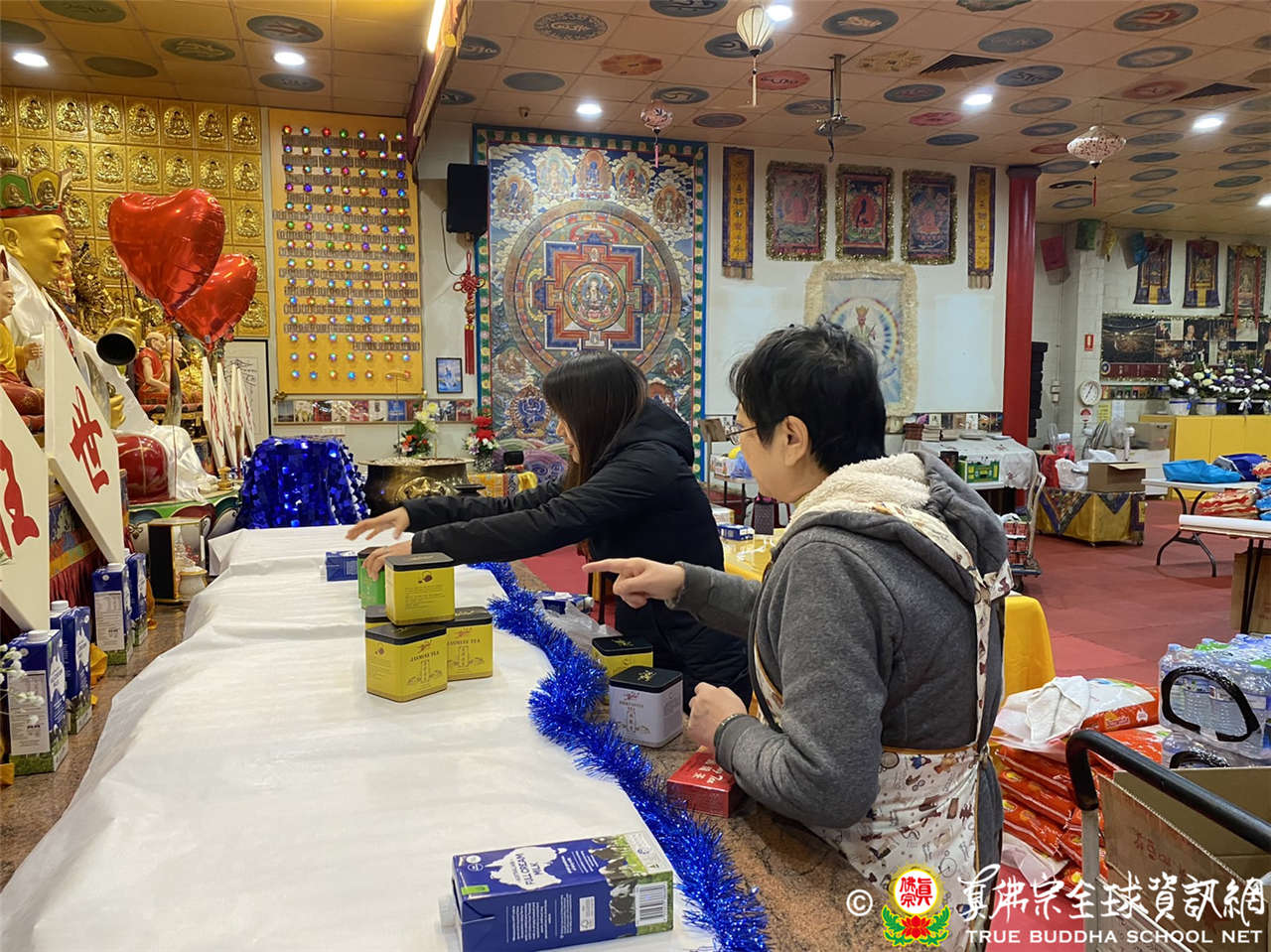 澳洲墨爾本善明同修會正在佈置會場以及薈供壇城供品。