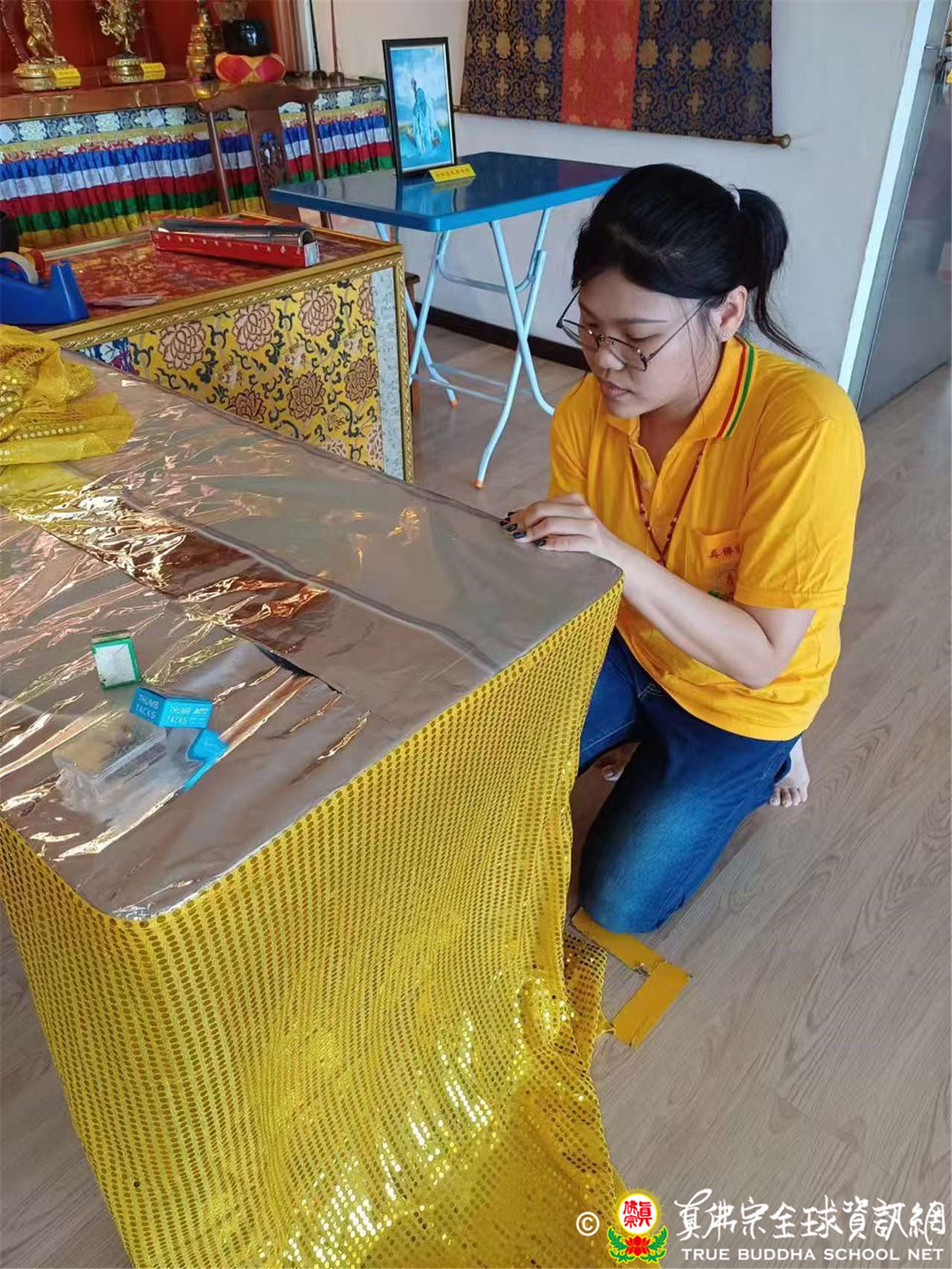 馬來西亞真佛宗妙理雷藏寺正在佈置會場以及薈供壇城供品。