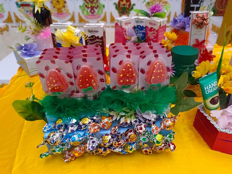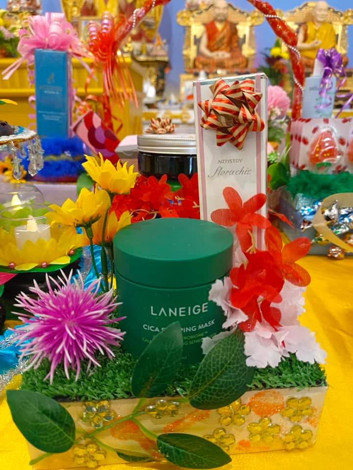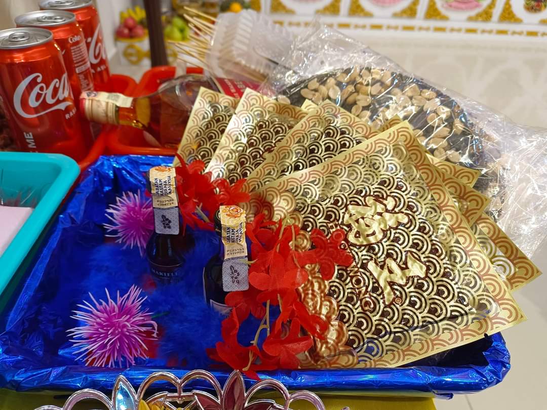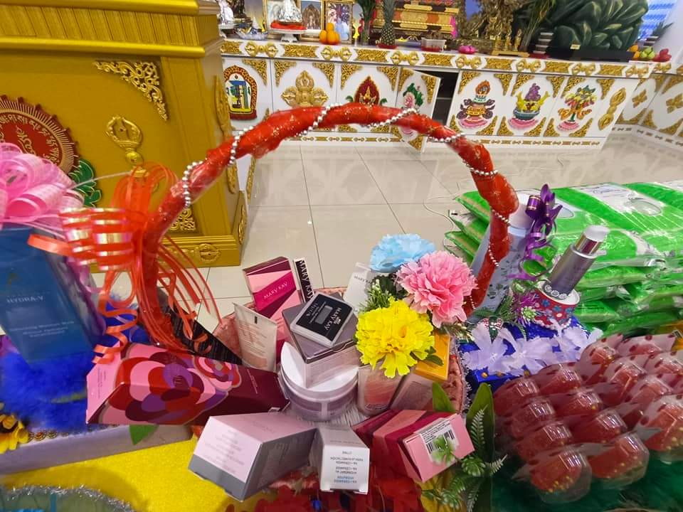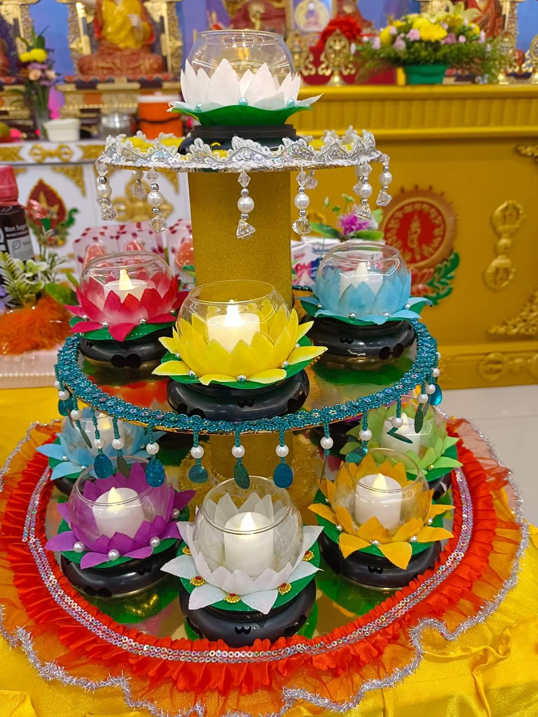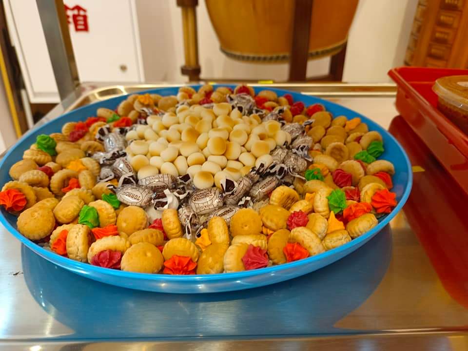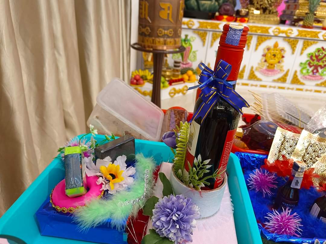 傳律雷藏寺義工們非常用心的準備供品,一一分別供養師尊、大力金剛、空行護法、過世父母、地神、鬼神眾、冤情障類等等。每樣供品無不是精心包裝。