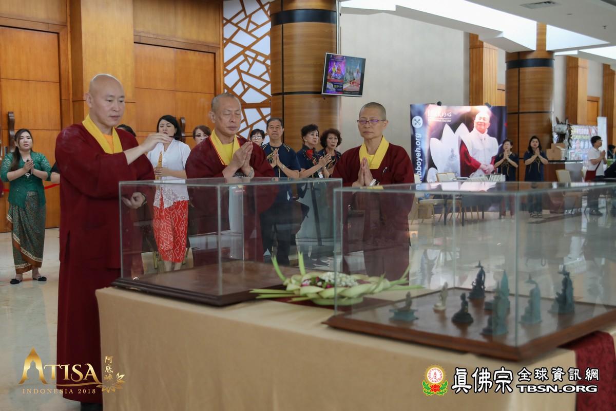 本次與會的大眾,除了有本宗真佛弟子們,還有印尼當地佛教界人士,更有來自印尼Gadjah Mada大學考古學系的莘莘學子們,盛情參與,前來汲取寶貴的考古研究成果。由於與會民眾的盛情,可容納千人的會議廳,座無虛席;而會場外所展出的多尊古蹟佛像前,也擠滿了一睹千年風采的民眾。