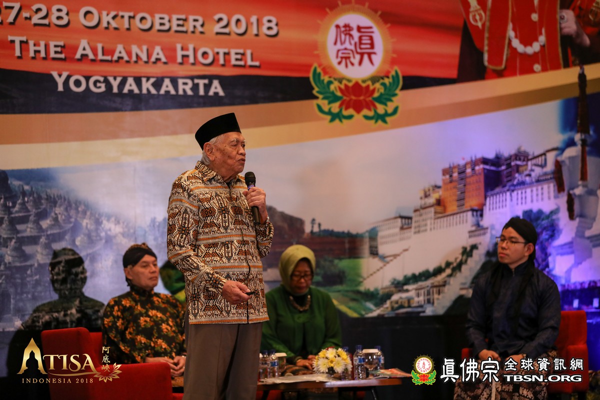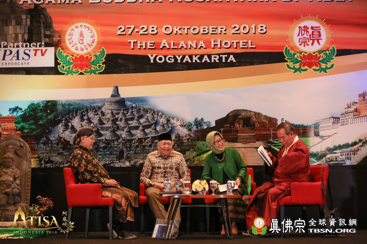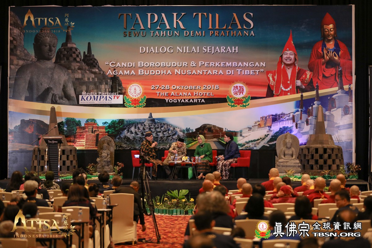 是日座談會共有三位主講者,由印尼旅遊局前局長,婆羅浮圖專家考古學家 哈利.悟恩多羅.特拉查教授,以「千年尋根阿底峽:一步一腳印」首先主講。第二位主講者是Gadjah Mada大學,考古學系教授 Niken Wirasanti女士,為在座與會眾等,帶來「三塔一體:門督(Candi Mendut)、巴翁(Candi Pawon)和婆羅浮圖(Candi Borobudur)」的主題演說。第三位主講者,是印尼考古學界國寶 努爾哈提‧嘛格薩利榮譽教授。教授連續兩天為到場參與的大眾主講,與阿底峽尊者相關的考古研究成果,本日所講主題是「婆羅浮屠佛塔上雕刻的意義」。
