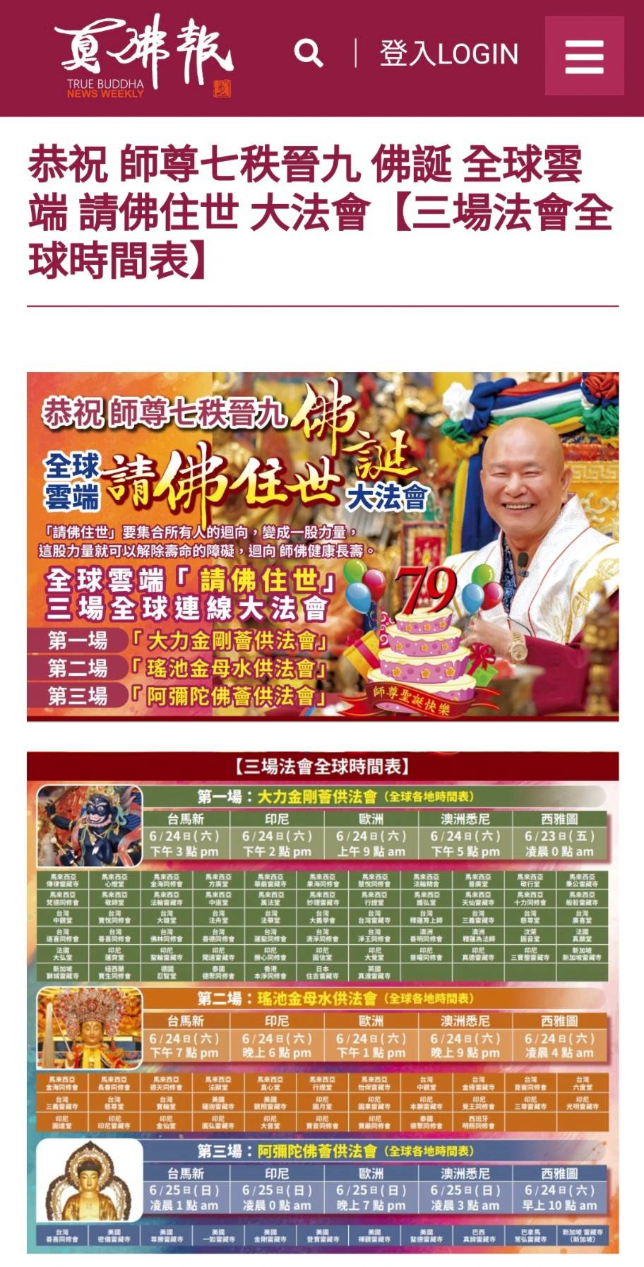 農曆五月十八是真佛宗根本傳承上師蓮生活佛的誕辰,是真佛宗最重要的日子。今年,宗委會率領眾真佛宗弘法人員、道場與同門,早從4月20日就開始呈獻佛誕壽禮。