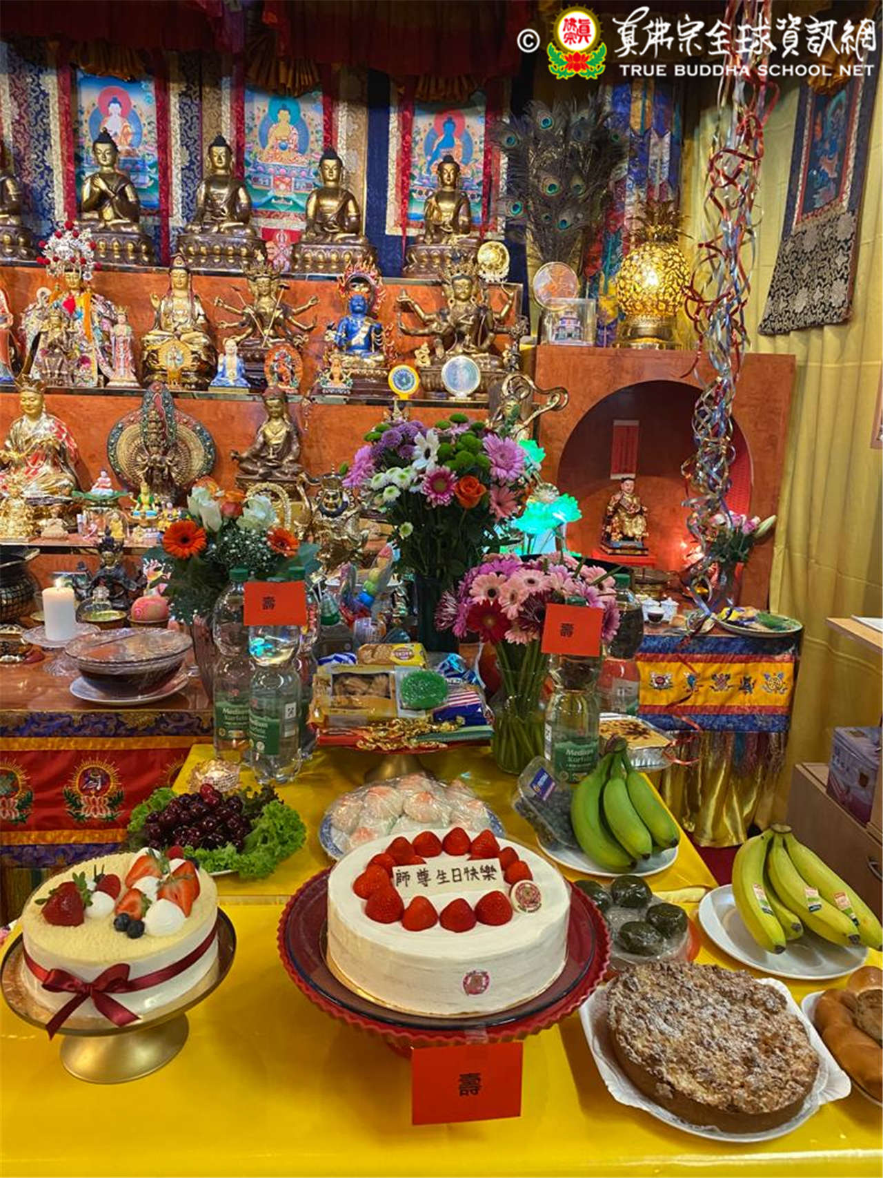 德國忍智堂歡慶2023佛誕 2023年7月5日為農曆五月十八,真佛宗根本傳承上師蓮生活佛盧師尊之佛誕。德國忍智堂準備了供品盛宴歡慶佛誕,為師尊送上最虔誠的生日祝福。