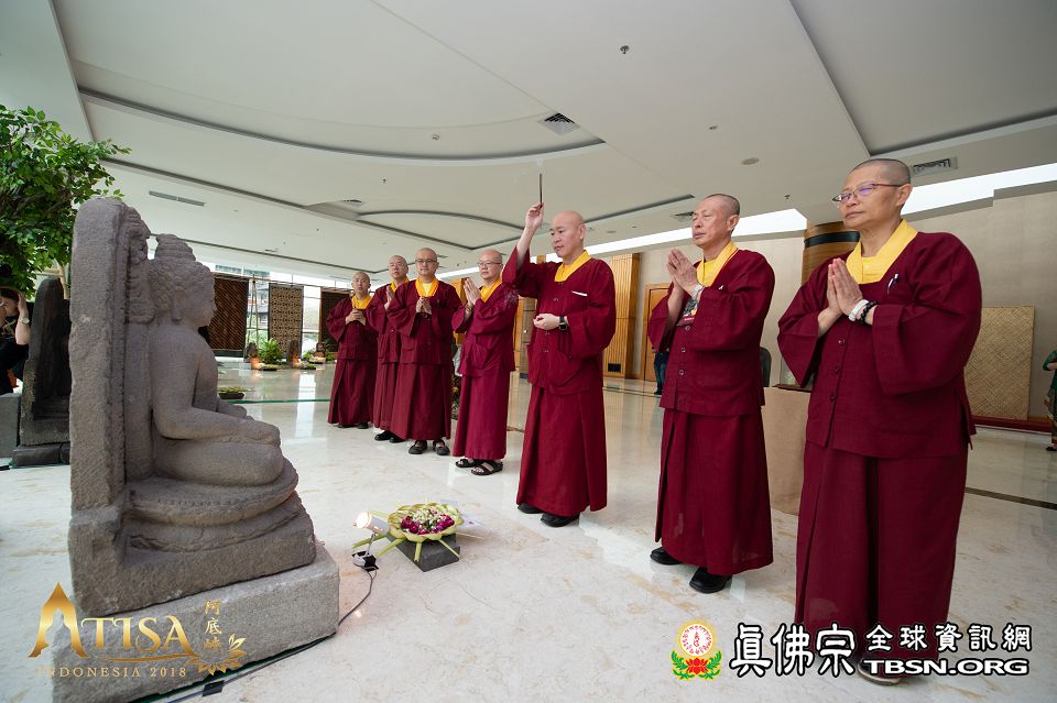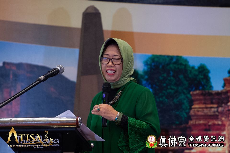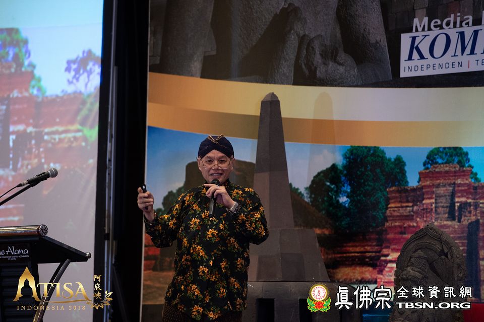 蓮飛上師也應邀致詞,提到婆羅浮圖殊勝的歷史定位,也向貴賓們介紹聖尊蓮生活佛昔日蒞臨印尼的盛況。聖尊的多篇文章之中,提到了阿底峽祖師,上師並且與大家分享師尊文章「阿底峽事師十二年」。