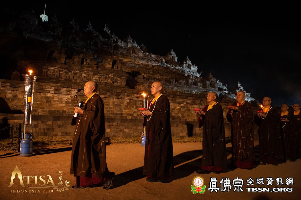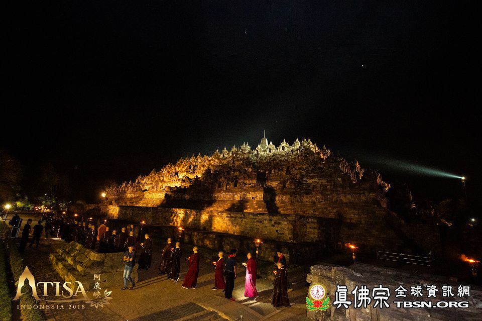 2018年10月28晚上,眾等齊聚世界七大奇景之一的「婆羅浮圖」佛塔前,由蓮僧上師主壇千手千眼觀音護摩。