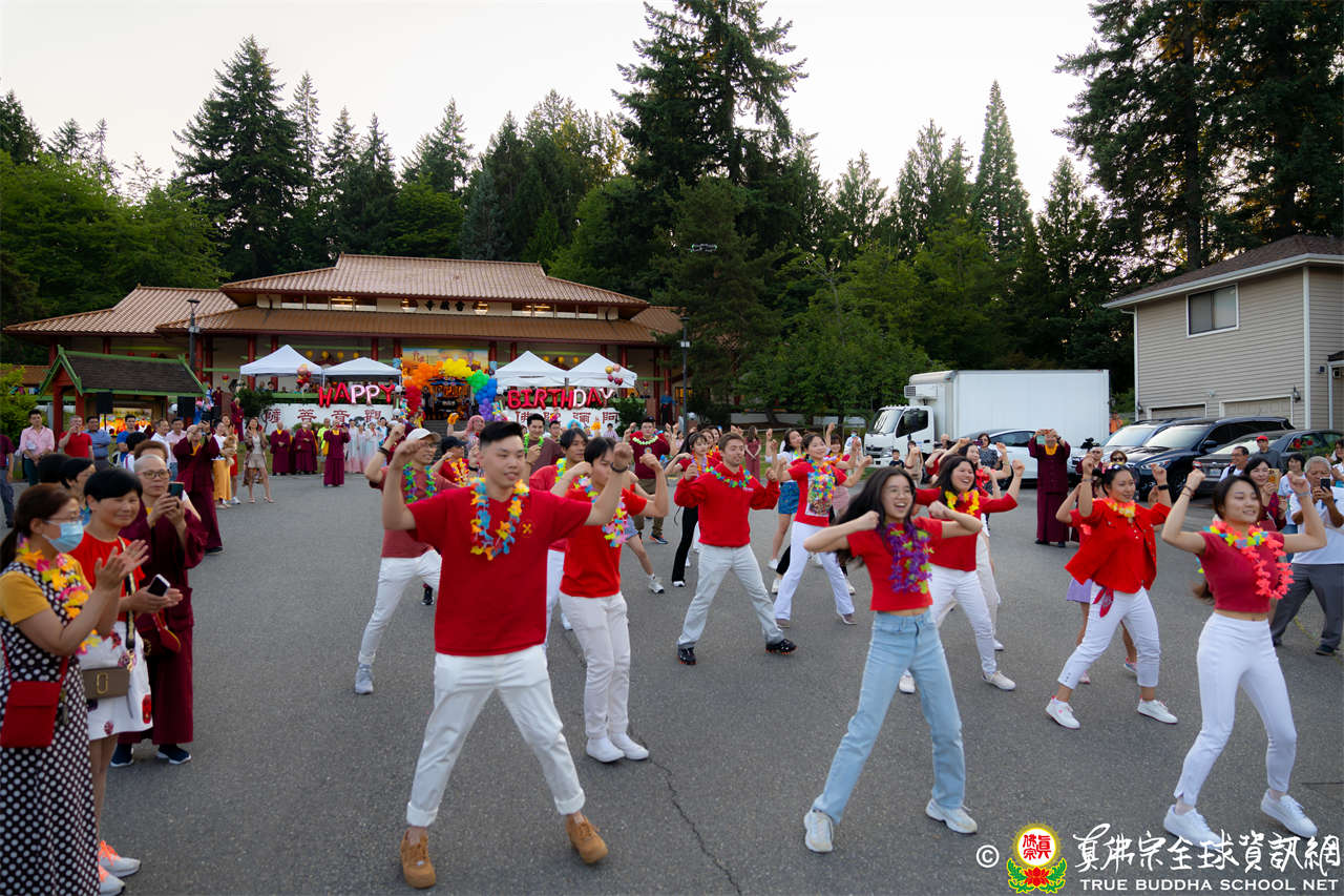 本次賀壽慶生晚會活動,乃由宗委會籌辦、西雅圖雷藏寺協辦。晚上八點整,師佛、師母剛從密苑走出來,便有一連串的驚喜表演,先是一段熱舞迎接,再來由蓮明法師及耀輝講師反串的熱情舞孃上場,Morgan及Angela的三太子表演,接著由各地青年組成熱舞群,讓師佛、師母走到祖廟的每一秒都充滿驚喜與歡笑。