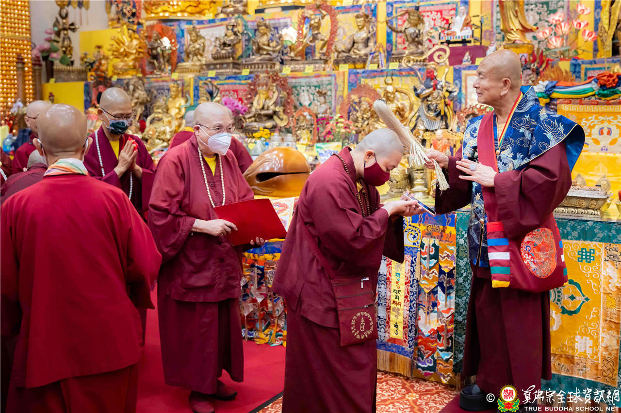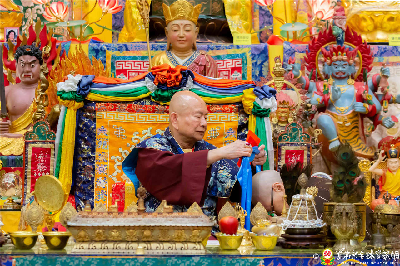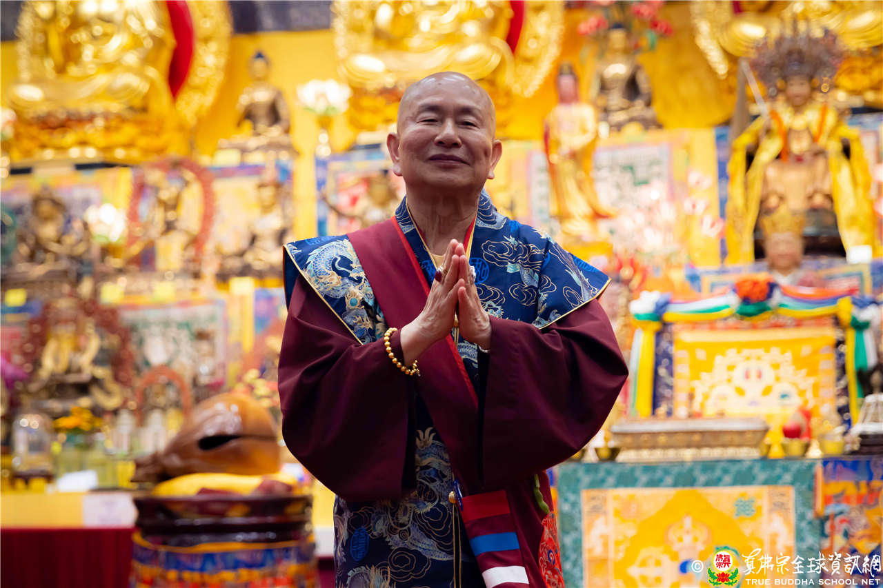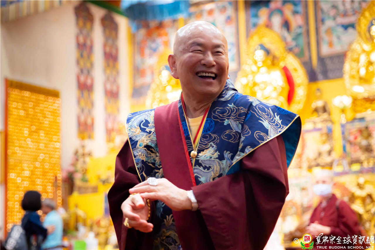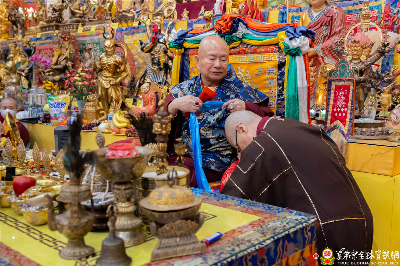 聖尊精闢的開示,令四眾弟子聽得津津有味,內心充滿法喜!聖尊給予皈依灌頂和加持後,大眾歡喜列隊,一一領受慈悲的聖尊以拂塵加持。
