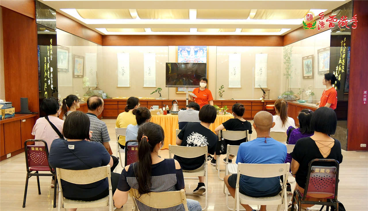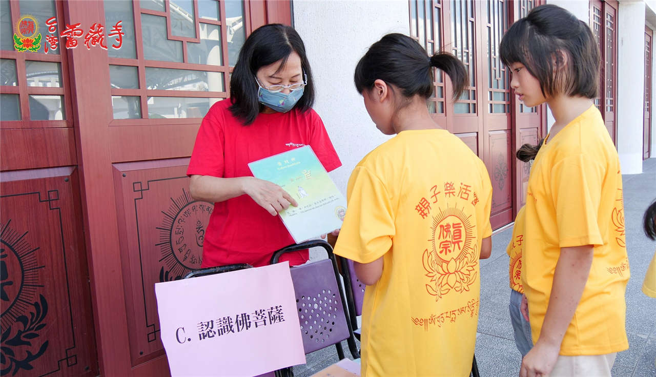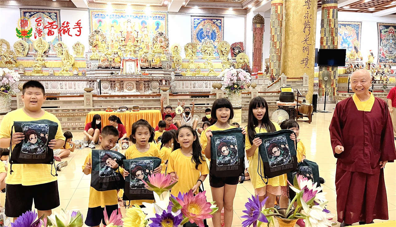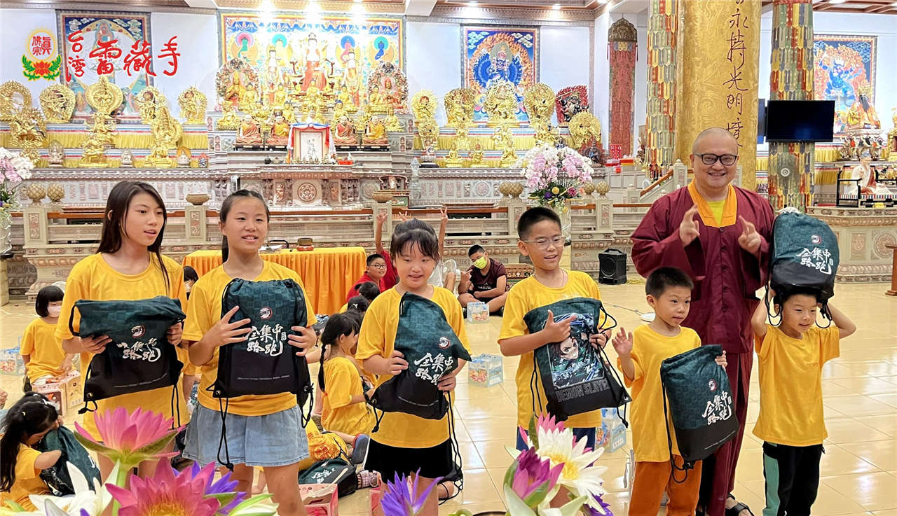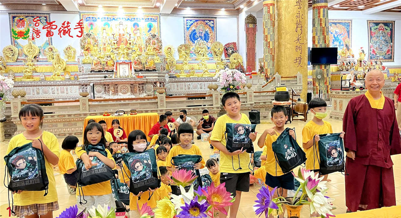 接著由資深老師熊師姐帶領幾位義工同門 ,為所有小朋友及家長對美麗雄偉的雷藏寺做一番簡介~賓頭盧尊者、不動明王、大力金剛、傳承大唐卡、、接著密壇真佛宗的緣起母娘、蓮花童子、古董紅財神、城隍菩薩,此時,貼心的蔡師姐特地由南部買來香水蓮花,送給每位小朋友供養佛菩薩,看著小朋友們天真虔誠的模樣,感覺再辛勞也值得了。