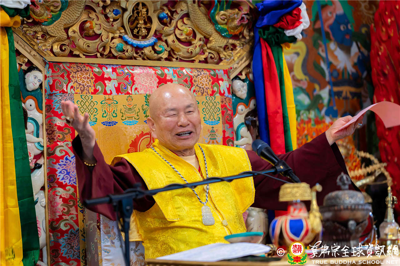 法王演繹從入世財神法到出世間清淨法,時而以幽默風趣地度眾,時而醍醐灌頂地警醒,觸動弟子心靈,讓弟子們重新思考自己生命狀態。法會結束前,線上弟子們恭祝法王佛體安康,請佛住世。法王加持祝福弟子們並賜予現場弟子「大隨求菩薩」不共大法灌頂,弟子們誠摯地感恩法王開示,法會圓滿結束。