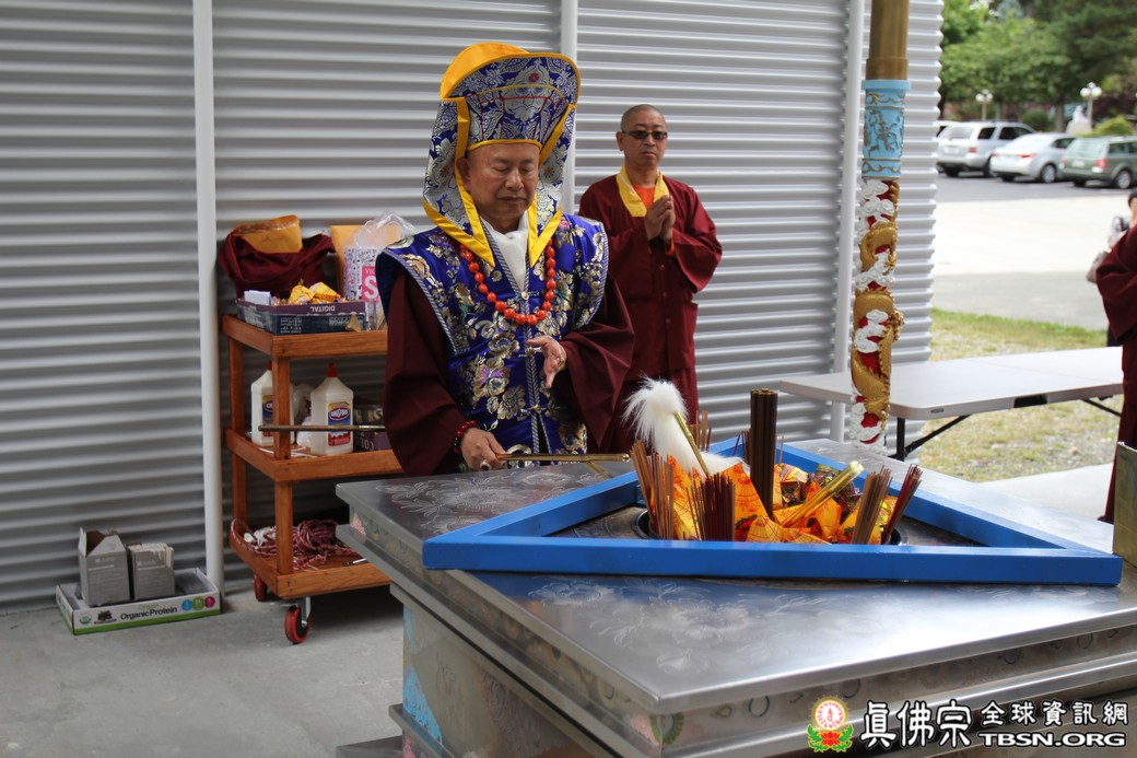 2019年6月23日下午,美國西雅圖彩虹雷藏寺恭請根本上師蓮生活佛盧勝彥主壇大力金剛護摩大法會。是日,當法王走到大力金剛的唐卡前時,居然發現唐卡裡還藏著兩位空行母,右邊是忿怒母、左邊是金剛瑜伽母,「今天大力金剛的護摩法會,還有兩位空行母跟隨下降,非常殊勝。」