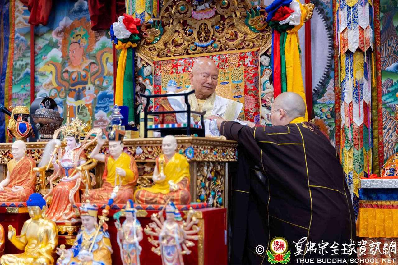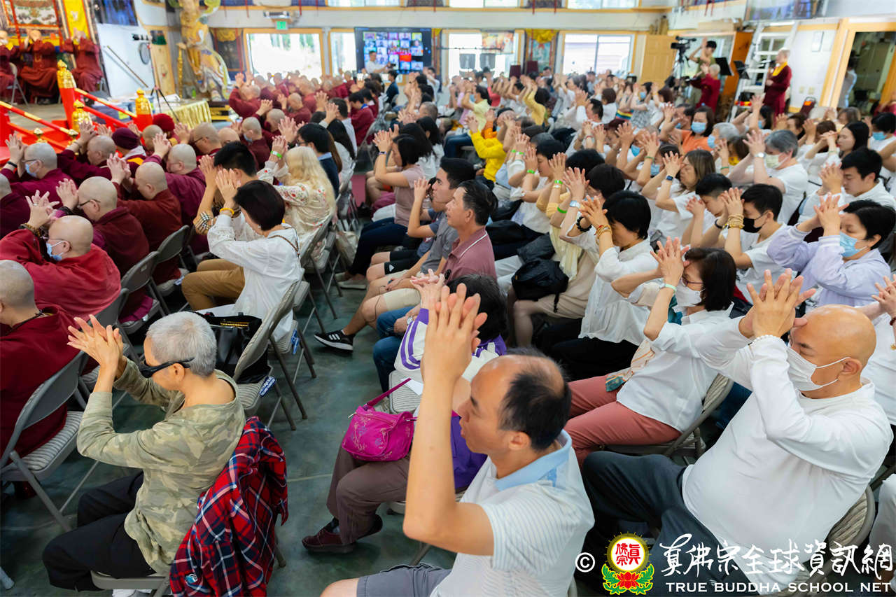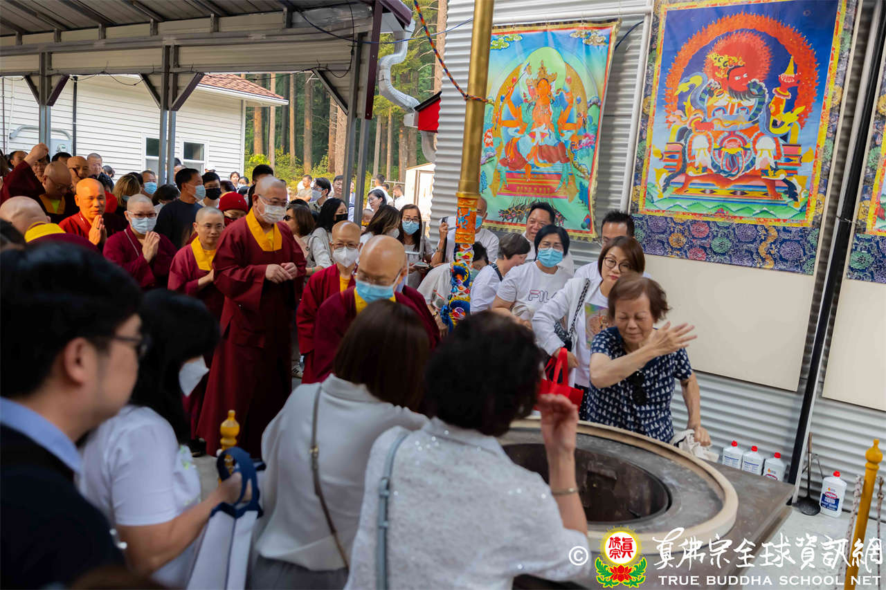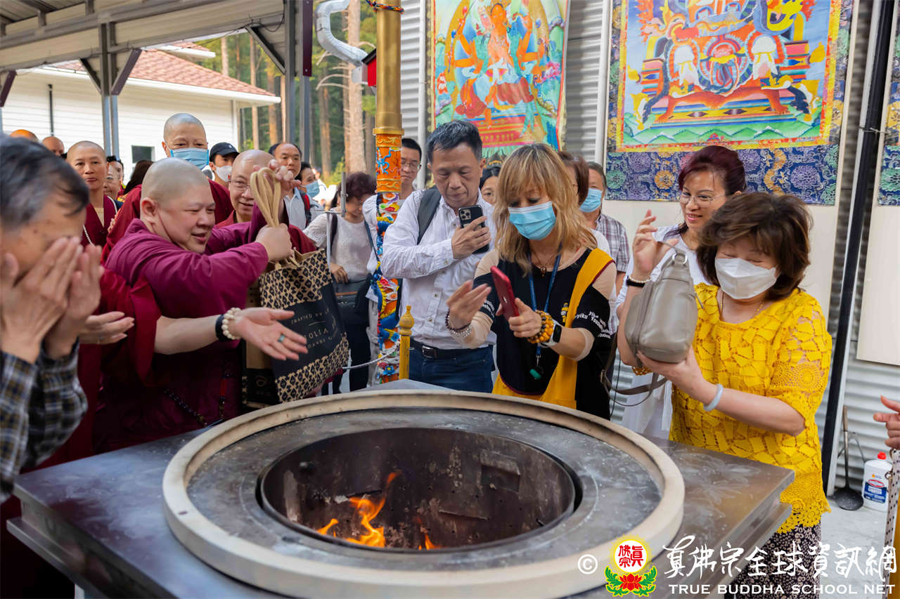 最後,法王述說世界和平的心願,精彩的法語開示到此結束。接著法王賜予現場與會大眾「千手千眼觀世音菩薩法」灌頂,護摩法會圓滿落幕。