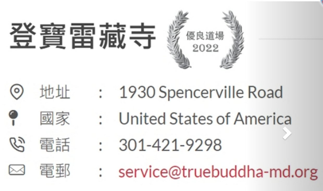 美國華府登寶雷藏寺座落在美國東部馬里蘭州,與美國首都華盛頓特區為鄰,距離白宮約1.5小時車程,附近地區統稱「大華府區」。馬里蘭州「Maryland」意為「上帝眷顧之地」。蓮紀法師言:在我逾三十年記憶中,此處從未經歷地震、雪災、水災、山林火災、人禍動亂種種災難。旨哉此名!