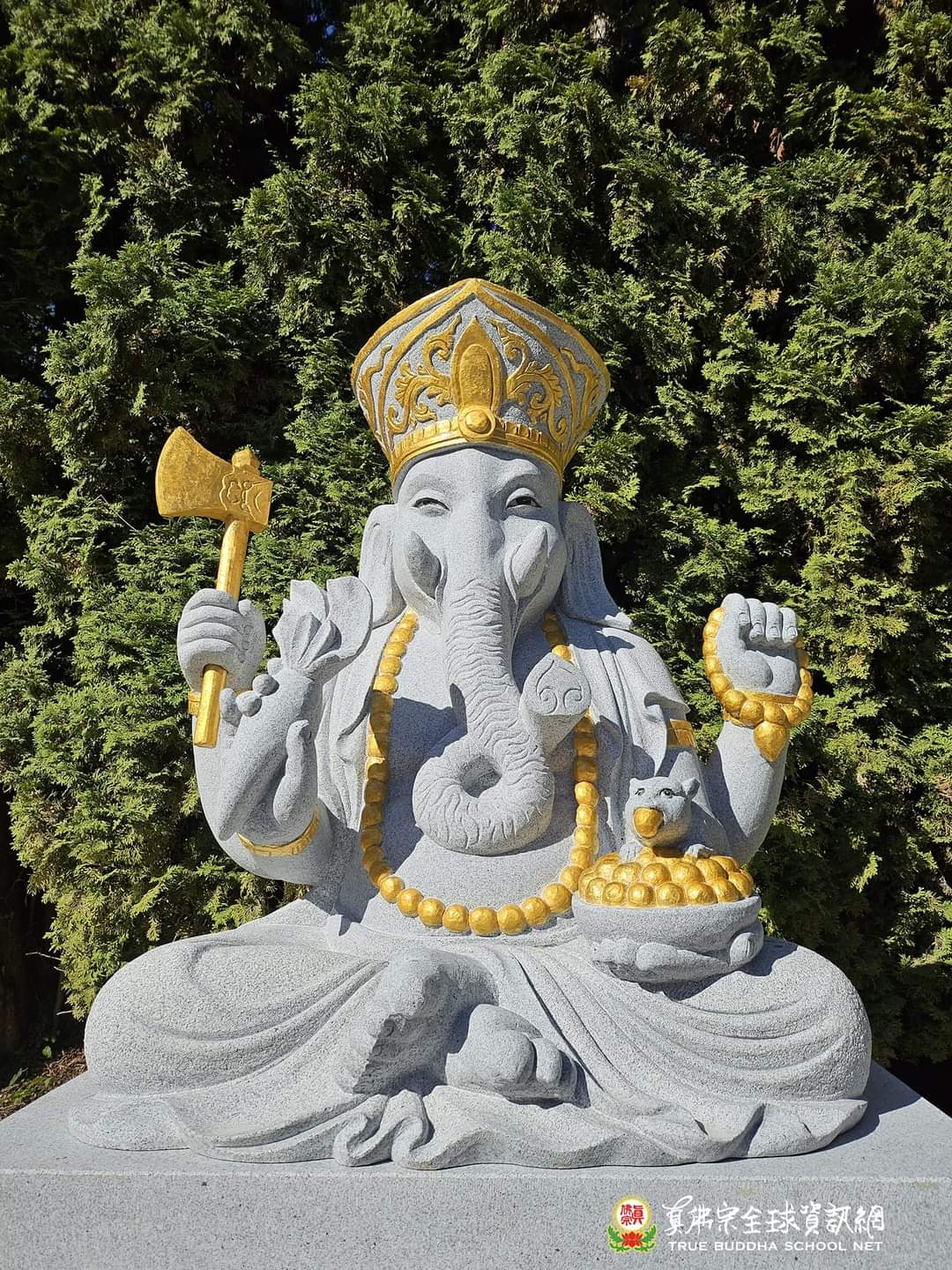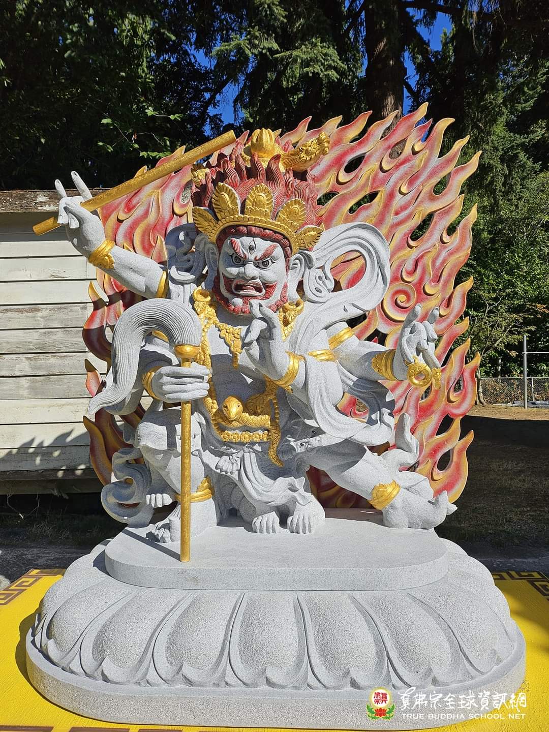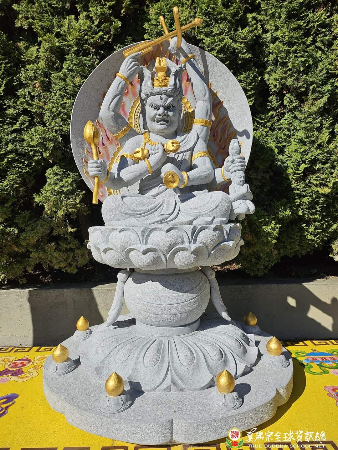 屹立在西雅圖雷藏寺後方的石雕佛像有:高王觀世音菩薩、愛染明王尊者、摩利支天菩薩、大力金剛及紅財神,並有真佛傳承海會巨大壁畫。