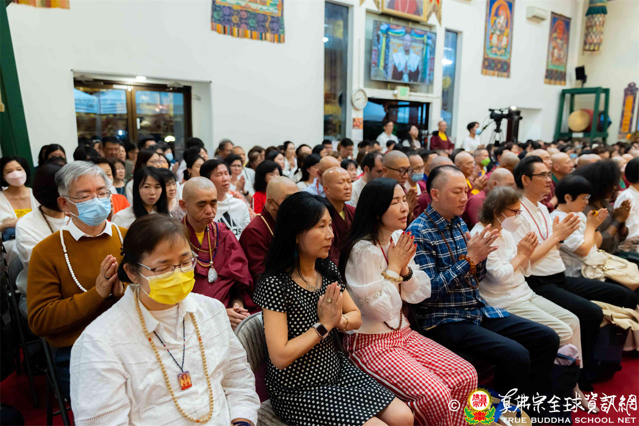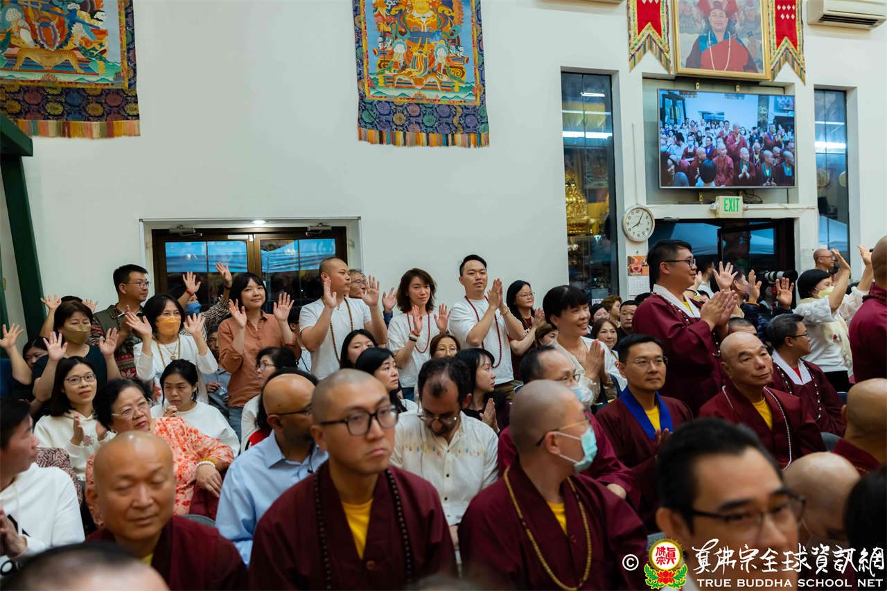 2023年9月16日,美國西雅圖雷藏寺延續著上星期秋季大法會的盛況,人潮洶湧,寺裡寺外坐滿了來自世界各國的弘法人員與善信大德,嘉賓Sun Burford女士也前來參與盛會,她熱心公益,目前擔任華大東亞圖書館之友聯席主席、Newcastle City藝術委員會董事、華州語言教師會董事,並正競選Newcastle市議員。大眾聚精會神的跟隨著聖尊蓮生活佛盧勝彥修持大白蓮花童子本尊法。