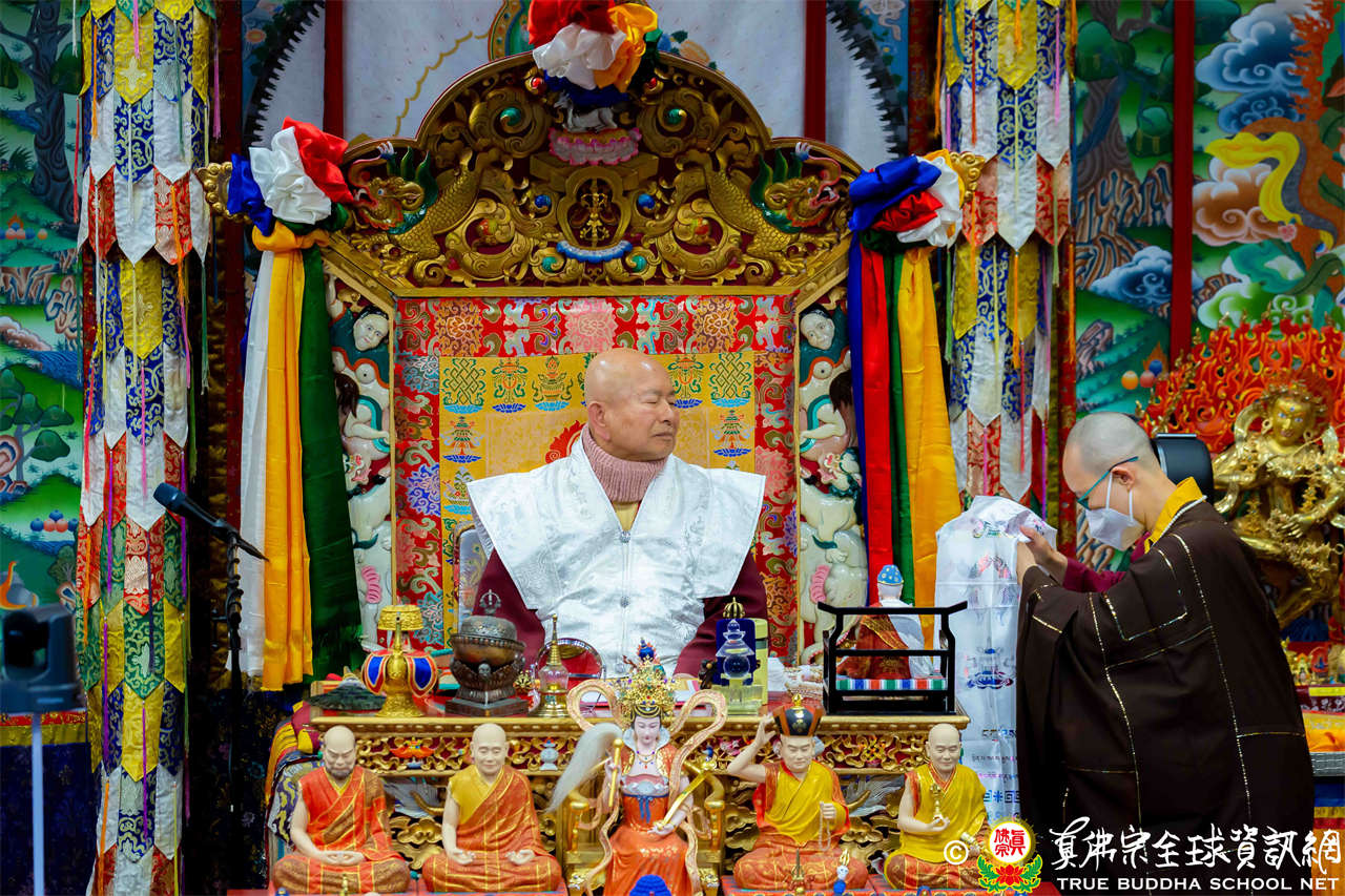 護摩儀式圓滿進行後,法王以各國語言向大家問候,先宣佈下星期護摩法會主尊是蓮華生大士,並且是二傳化虹大法,此法是密教紅教大圓滿法中阿底瑜珈最高的大法,歷代的祖師爺都是虹光化身。聖尊也講解了蓮華生大士的種子字和手印,此化虹大法的首傳是在台灣小巨蛋。