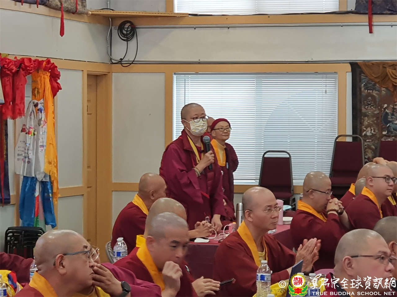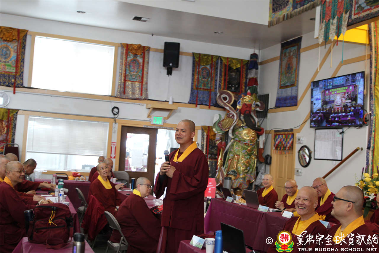 會長最後代表全體上師,感謝西雅圖雷藏寺及彩虹雷藏寺的工作團隊協助本次會議,也感謝來自英國、澳洲等國家的大廚義工們,每天一大早便來到彩虹雷藏寺,為上師們準備色香味俱全的美味佳餚,大廚們亦表示希望師佛加持,明年有資糧繼續來西城為大家服務。至此二天的上師大會圓滿結束,緊接著第三天便是期待已久的上師進修課程。