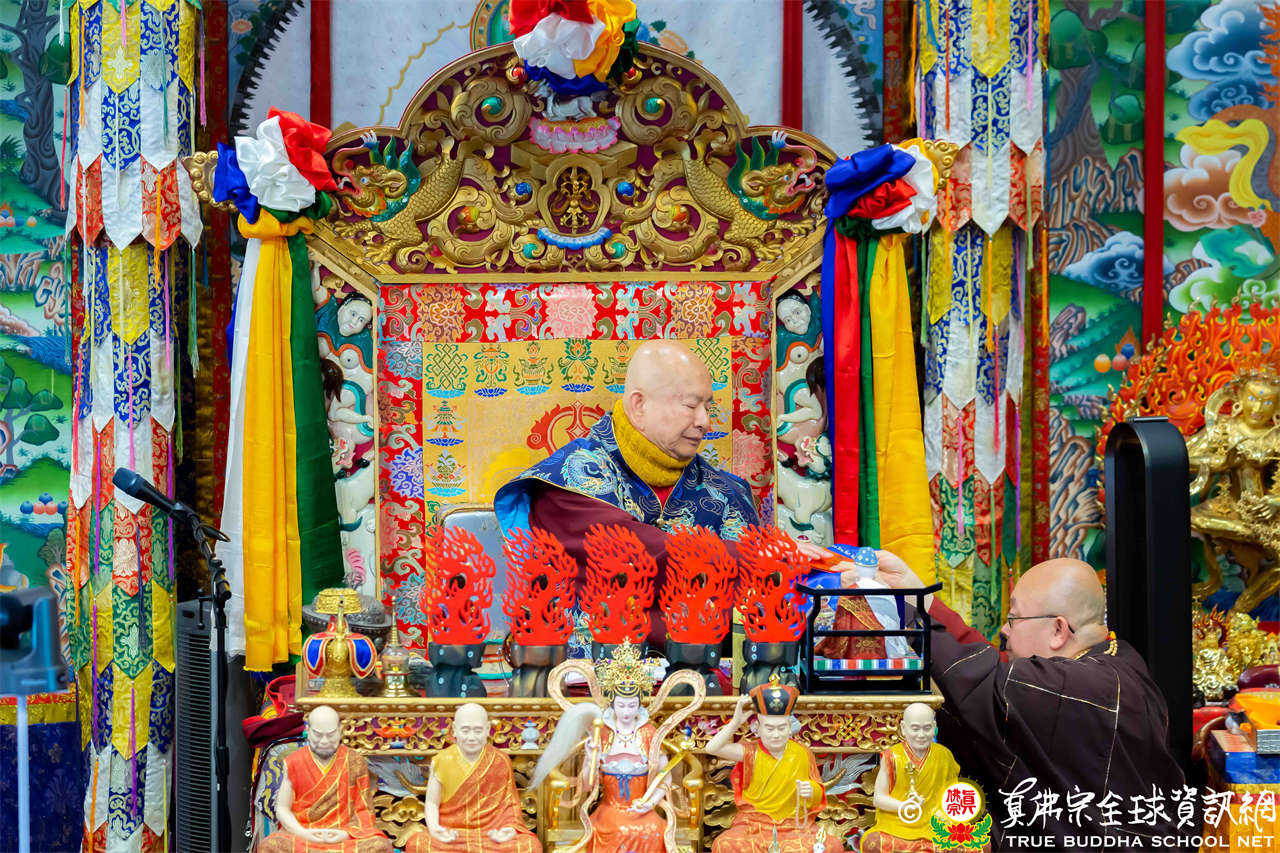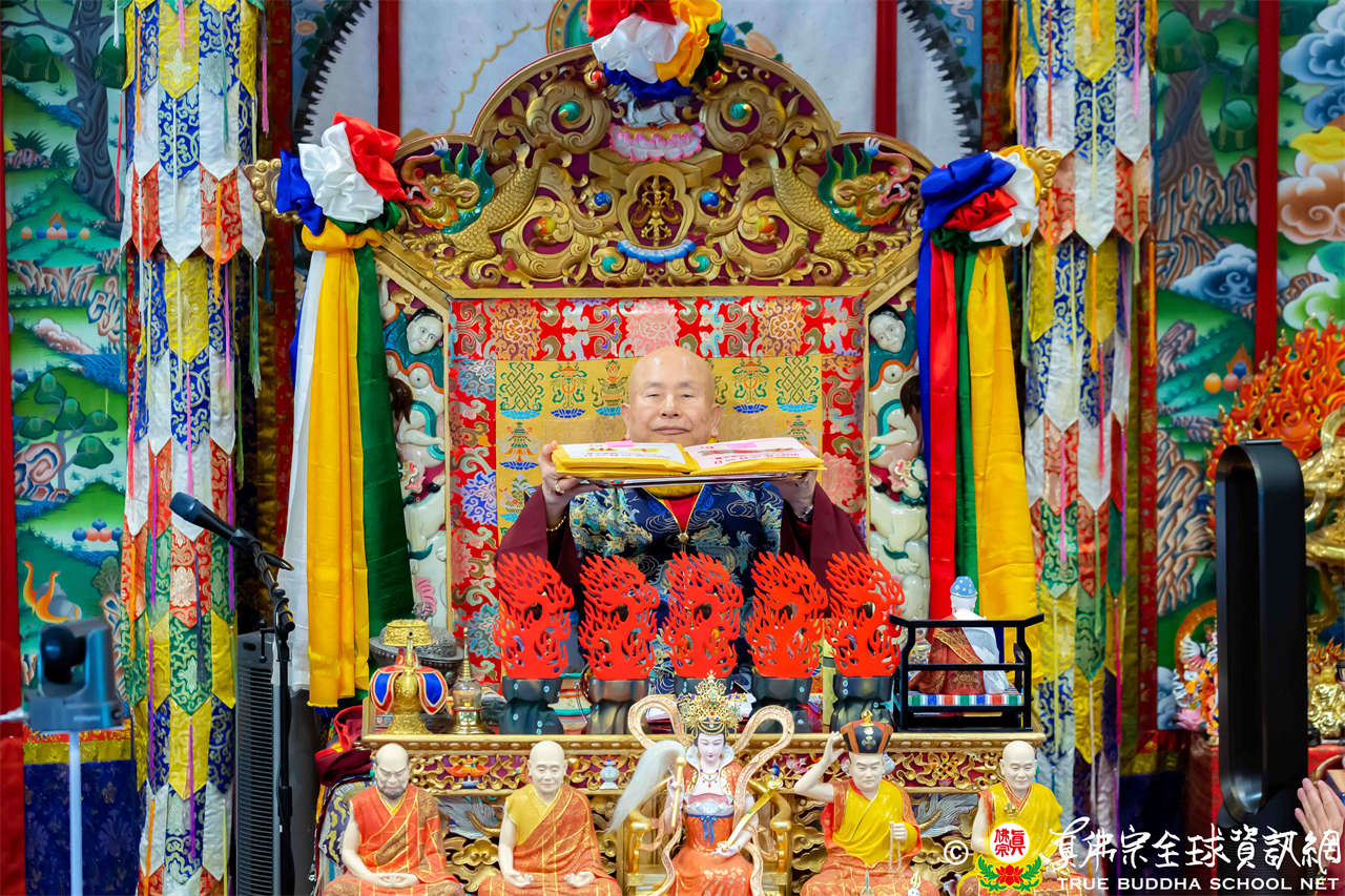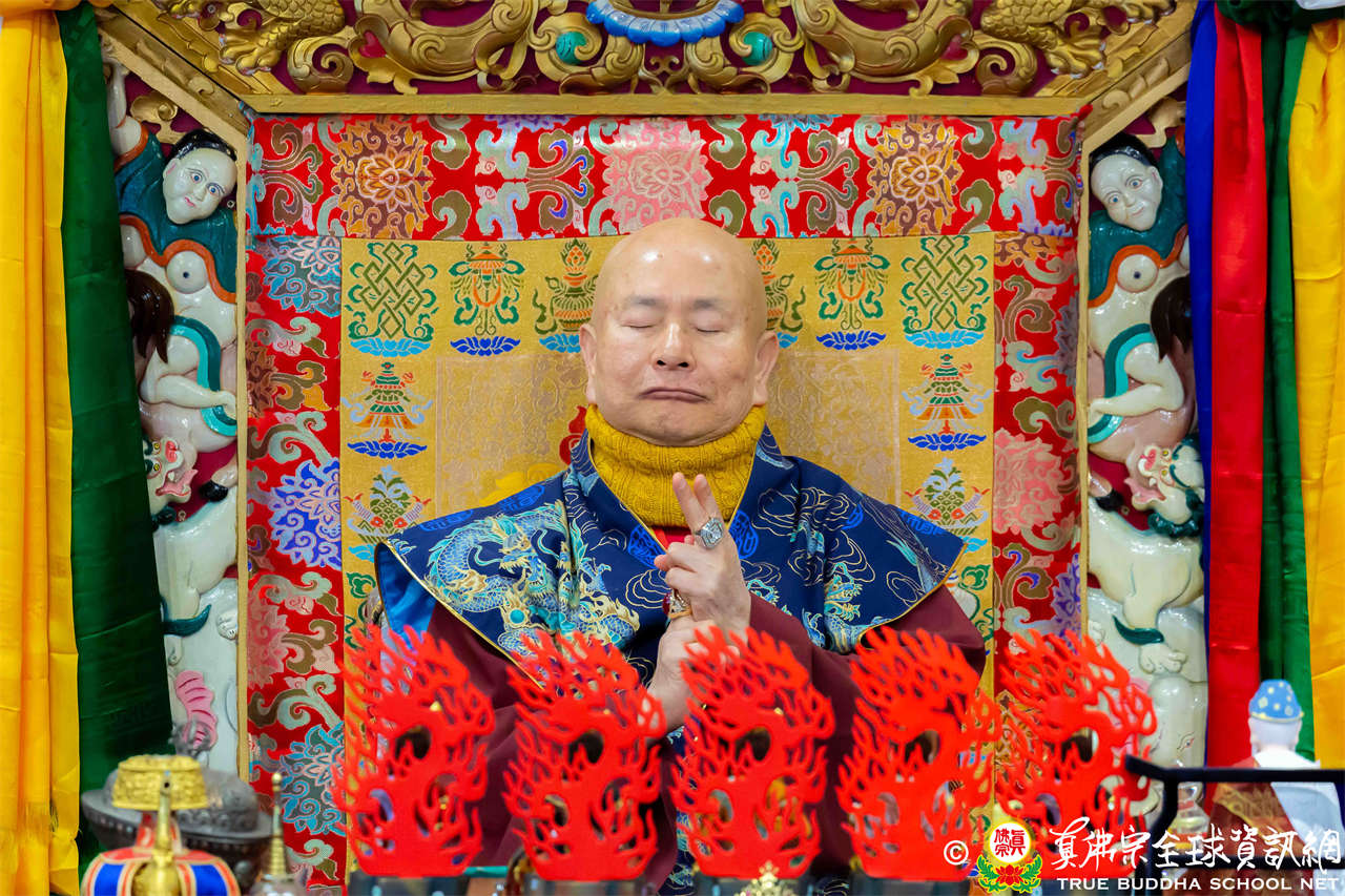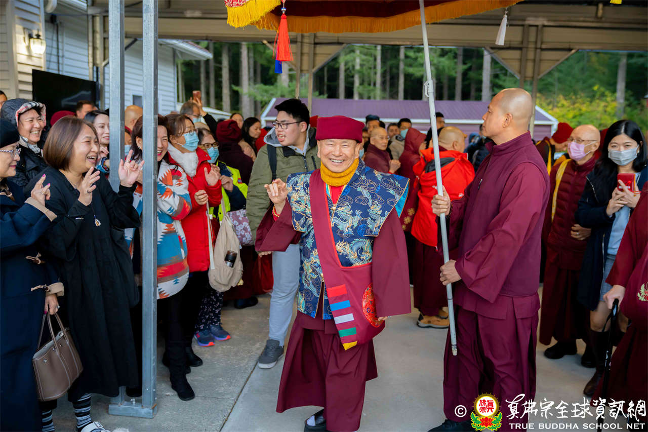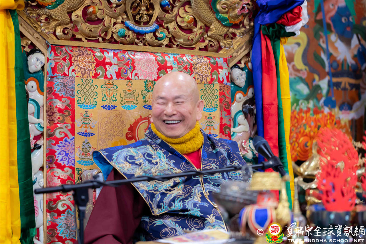 法王開示至此,護摩法會圓滿結束。接著,法王與線上的弟子打招呼,並爲現場出席者賜授五色不動明王法灌頂。