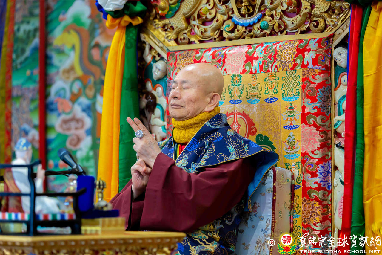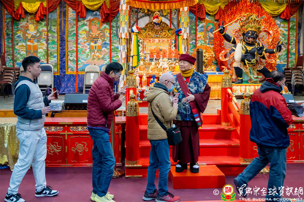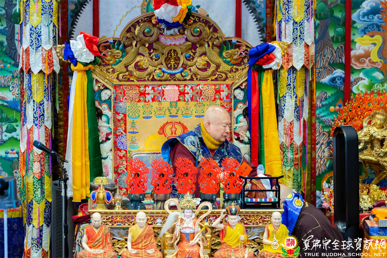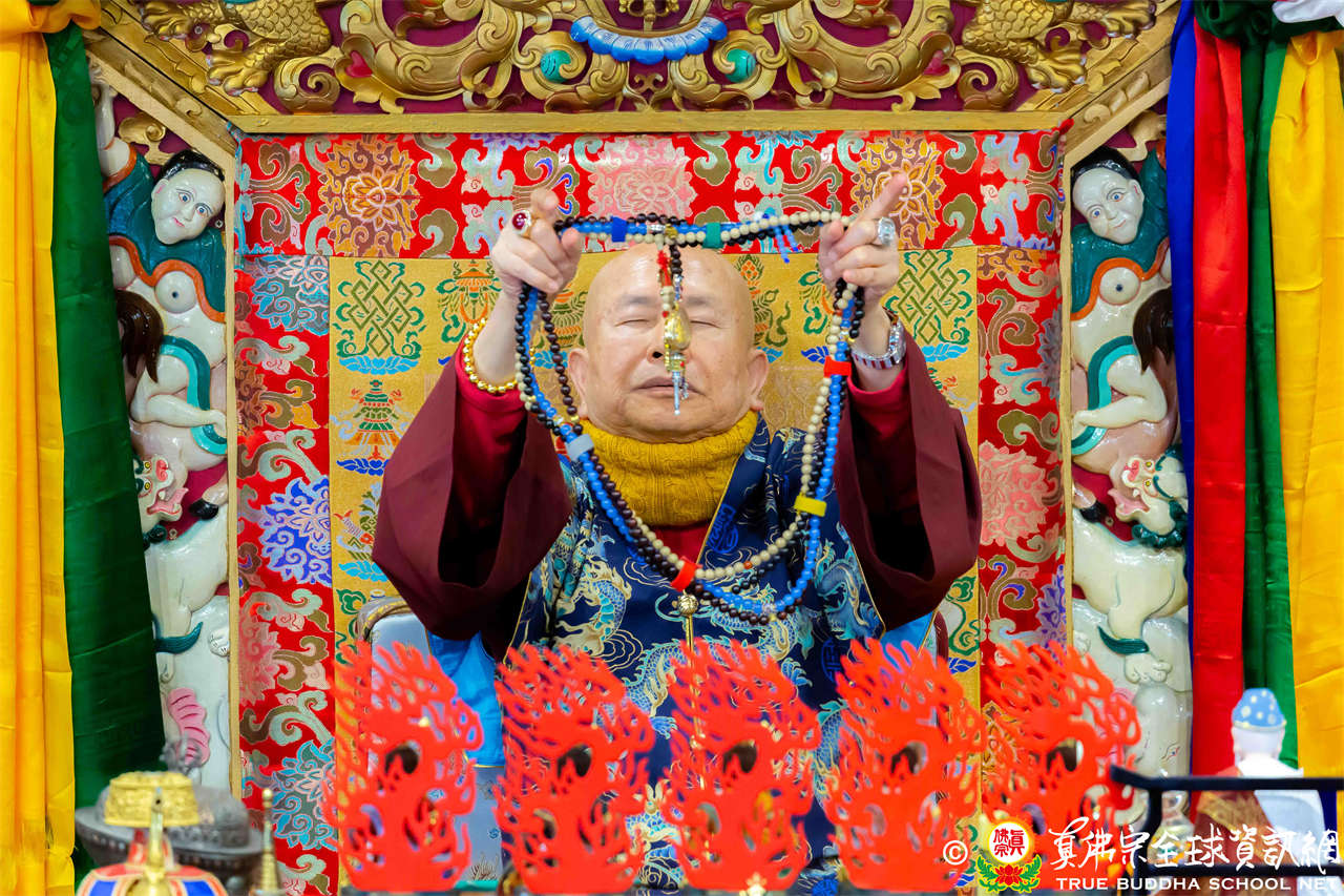 法王開示至此,護摩法會圓滿結束。接著,法王與線上的弟子打招呼,並爲現場出席者賜授五色不動明王法灌頂。