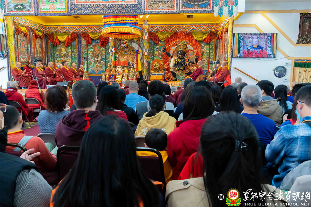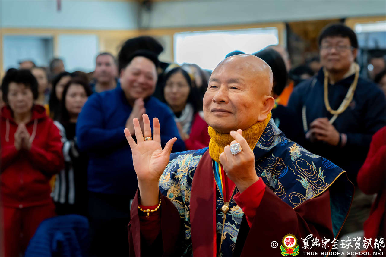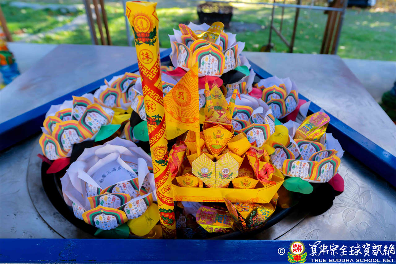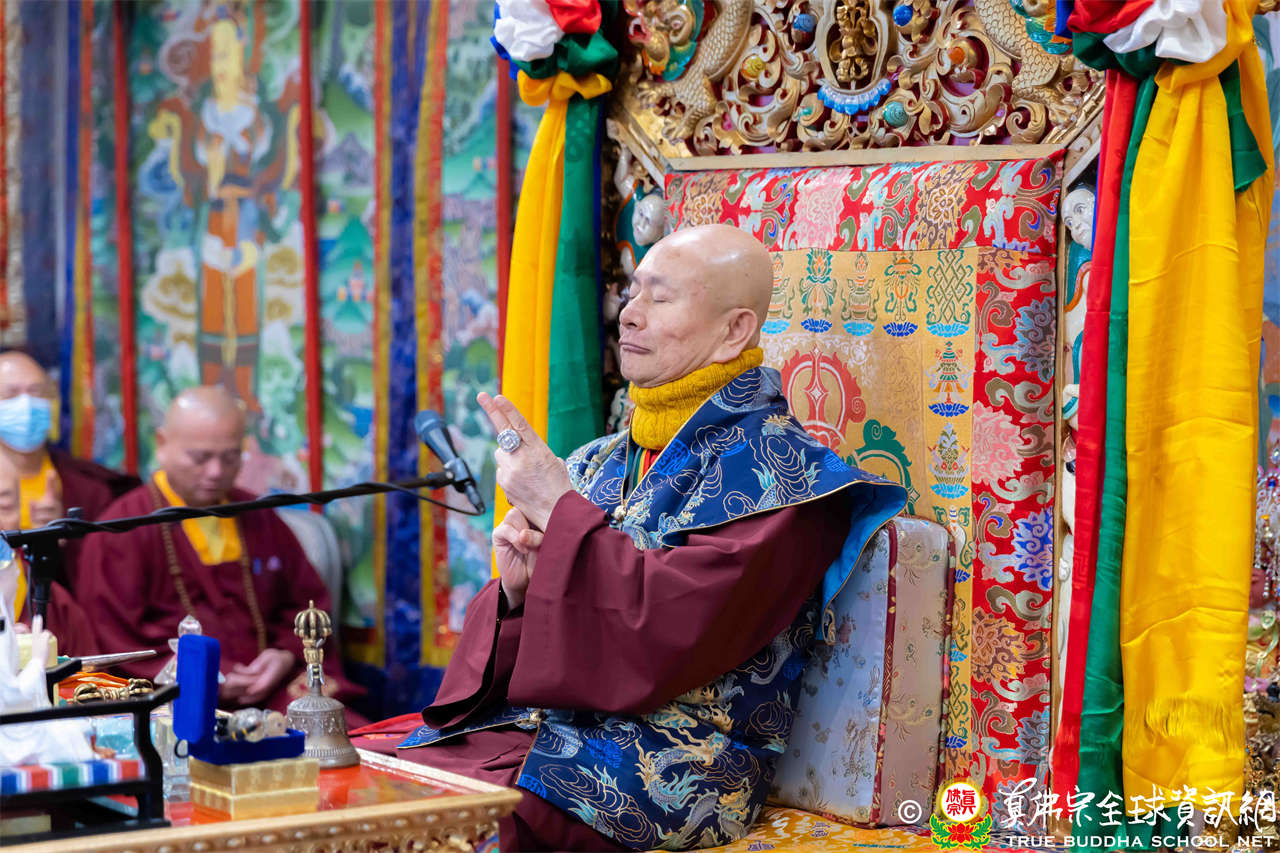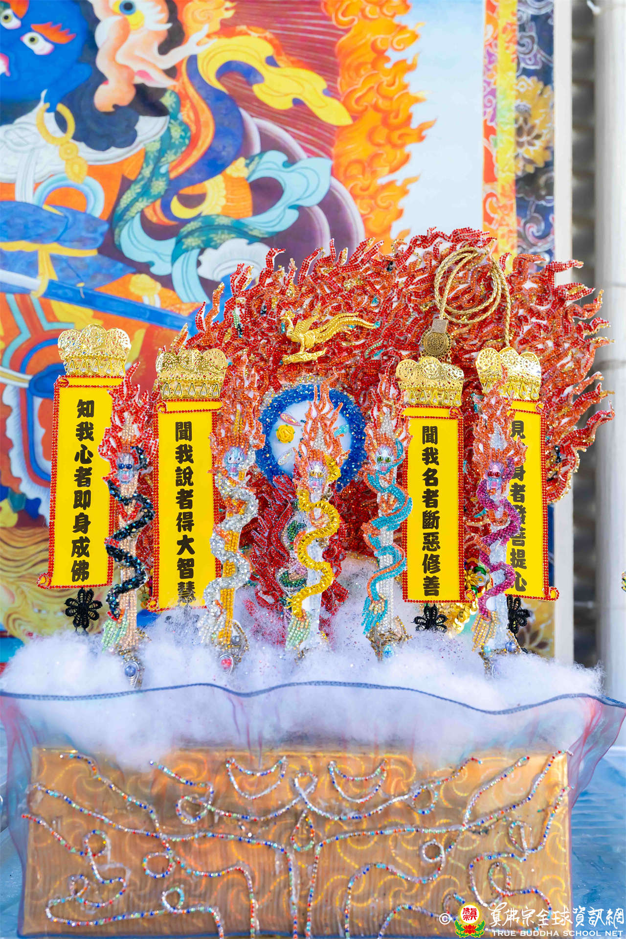 法王開示至此,護摩法會圓滿結束。接著,法王與線上的弟子打招呼,並爲現場出席者賜授五色不動明王法灌頂。
