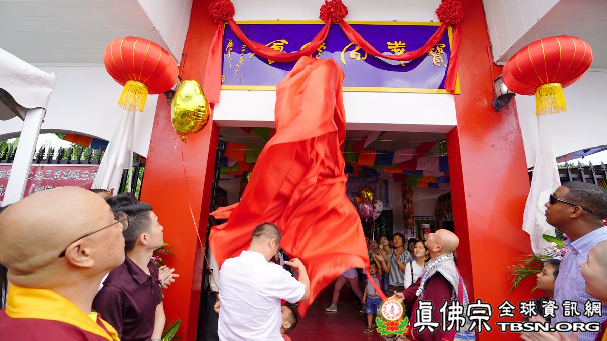 開光儀式當日,艷陽高照,寶華同修會的同門將道場佈置得十分隆重,壇城的中央鋪上長長的紅地毯直到馬路邊,義工同門準備了許多七彩的氣球,和許多的點心、飲料供與會的信眾享用。