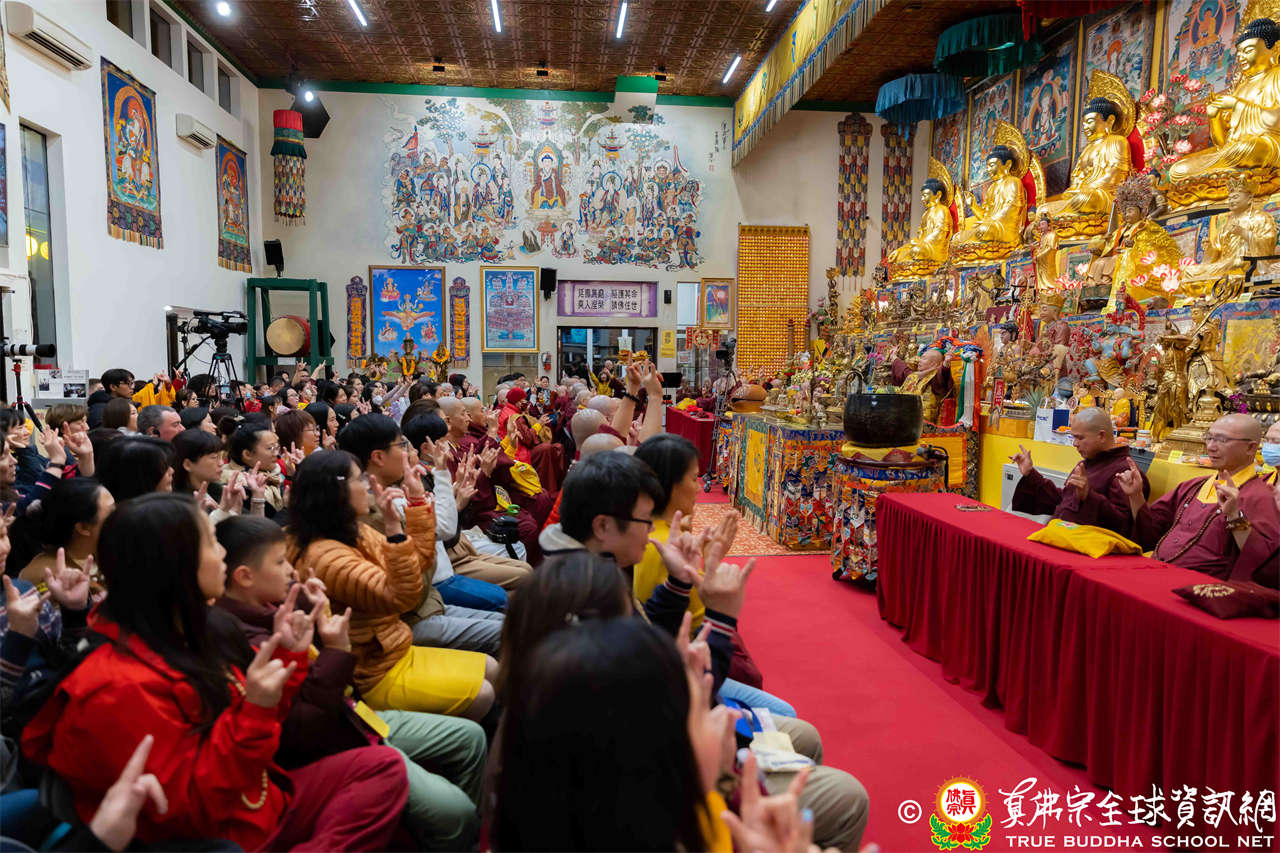 冬季即將到來,寒意凜凜,但四眾弟子心中卻是暖呼呼的,隨著蓮花童子咒音的響起,一同恭敬地迎接聖尊蓮生活佛盧勝彥蒞臨主持黃財神本尊法同修。眾弟子跟隨聖尊修法,滿心法喜,同修圓滿吉祥,大眾全神貫注的聆聽聖尊法語開示。