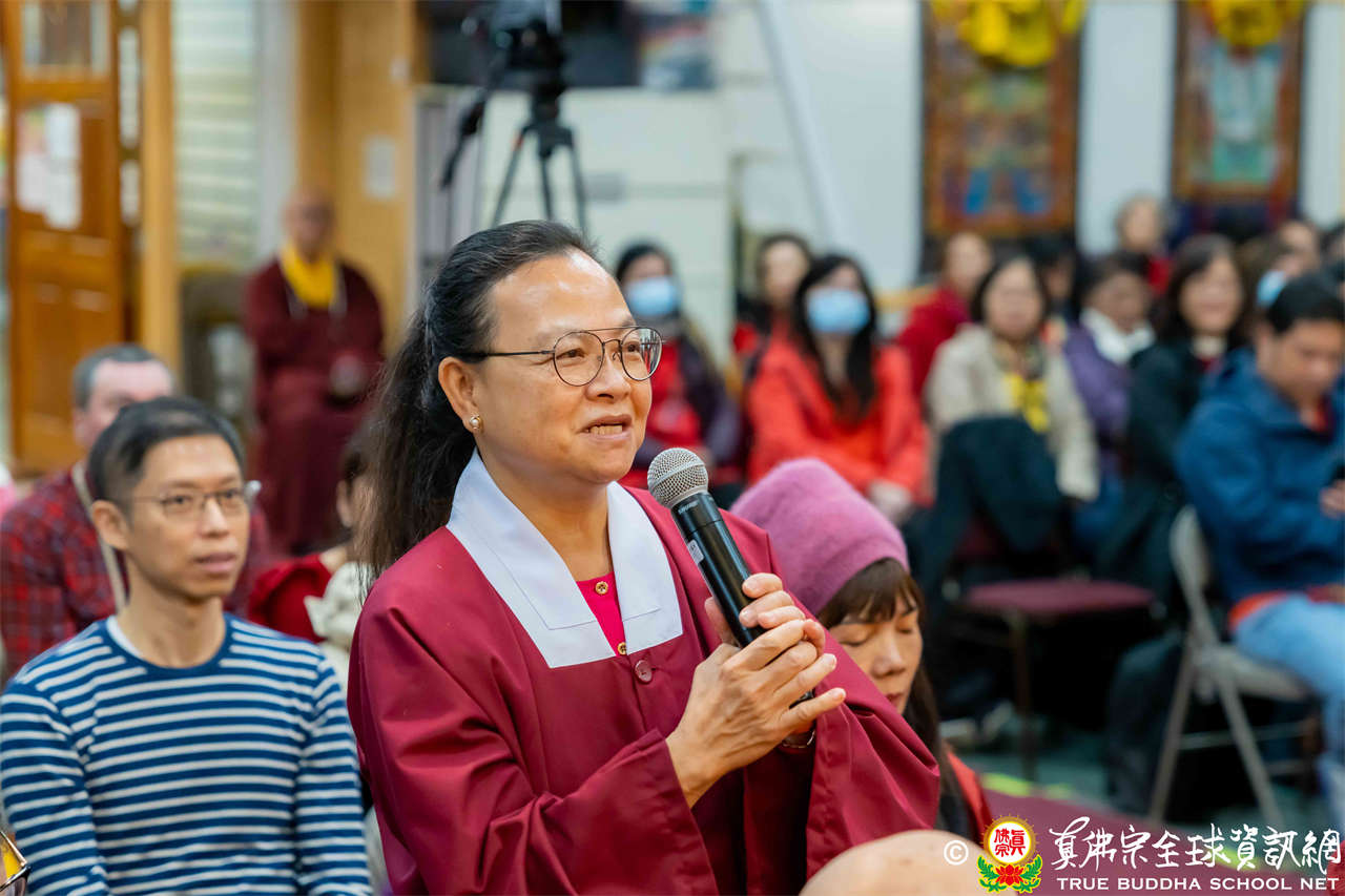 接著,法王開始為弟子釋疑解惑,來自新加坡的弟子問: