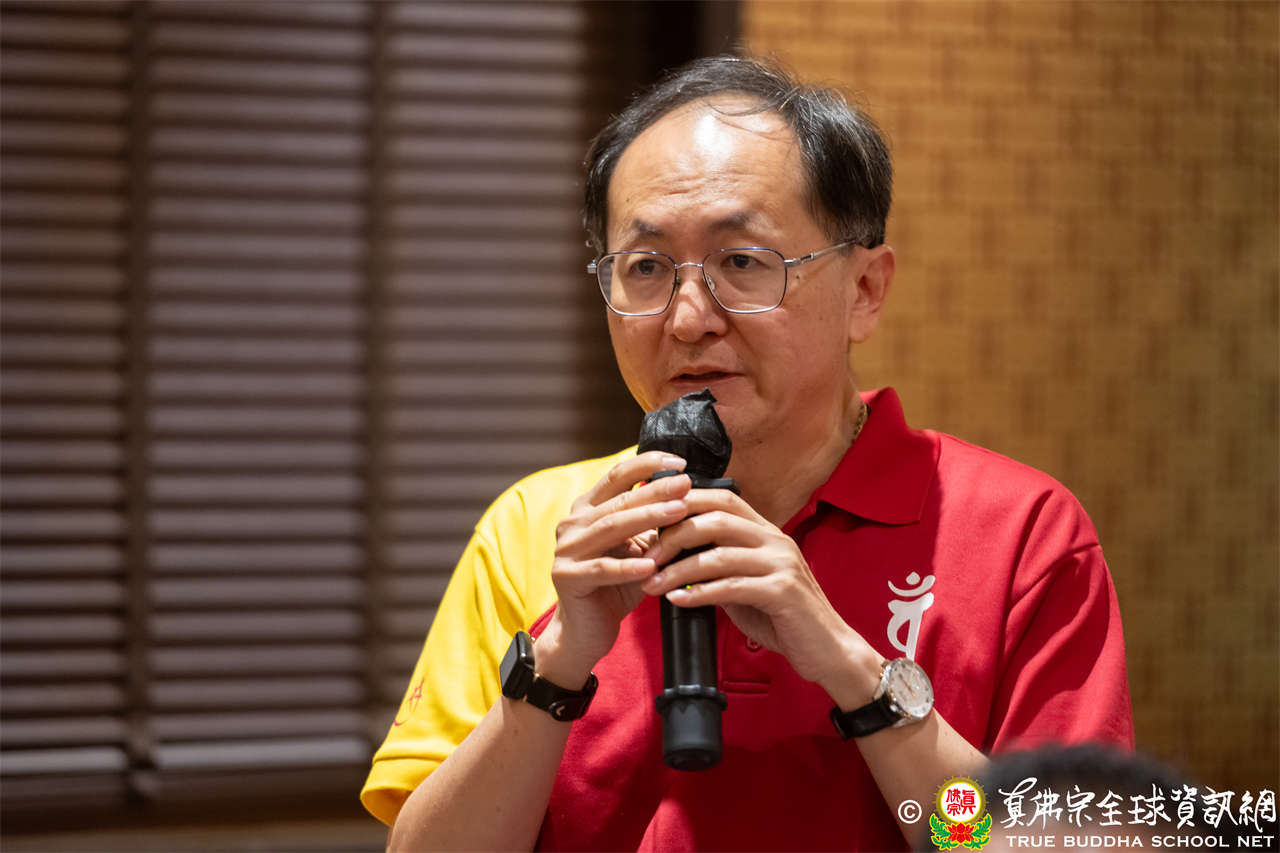 接著由教育處處長釋蓮訶上師帶領討論「未來新加坡真佛教育的趨向」。師尊曾提及,真佛宗派要長遠,唯有「教育」二字。上師提到這次拜訪新加坡各道場,發覺有各行各業的人才,同時教育水準、文化素養也都很好,也看到新的一代成長成為宗派人才。除了建議多參與真佛教育外,也建議可以集合起來舉辦對外和對內活動。
