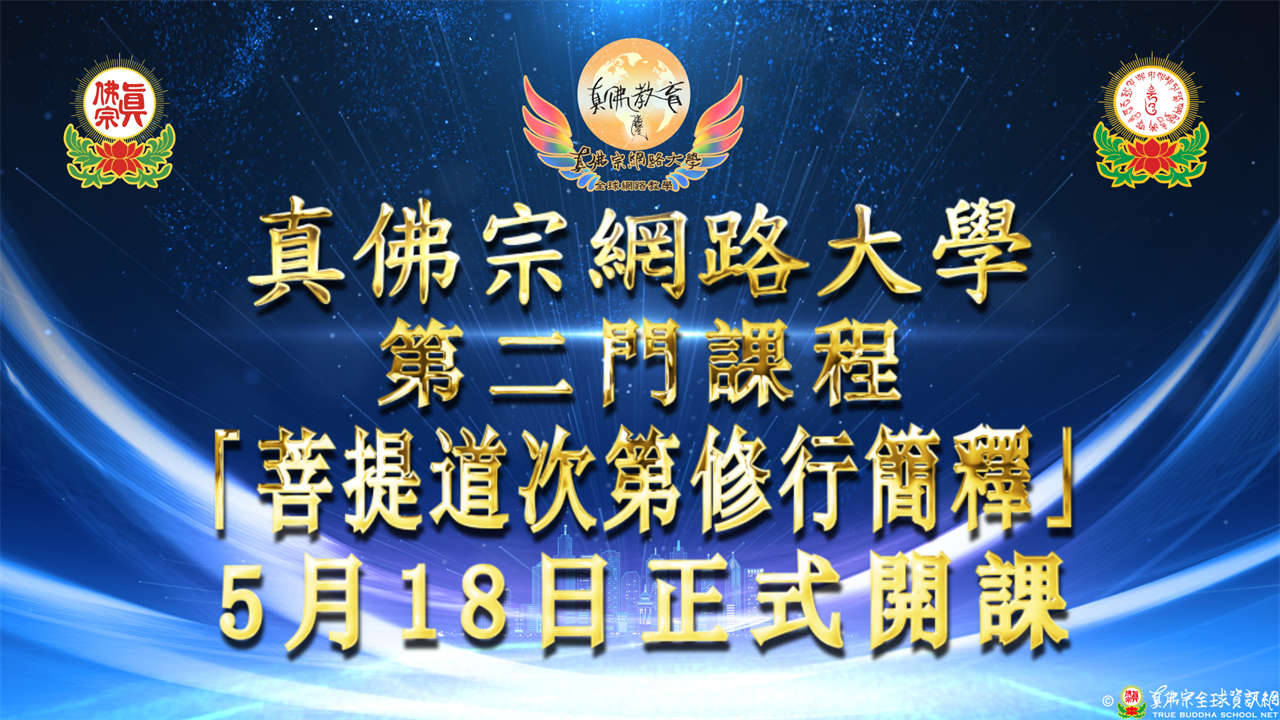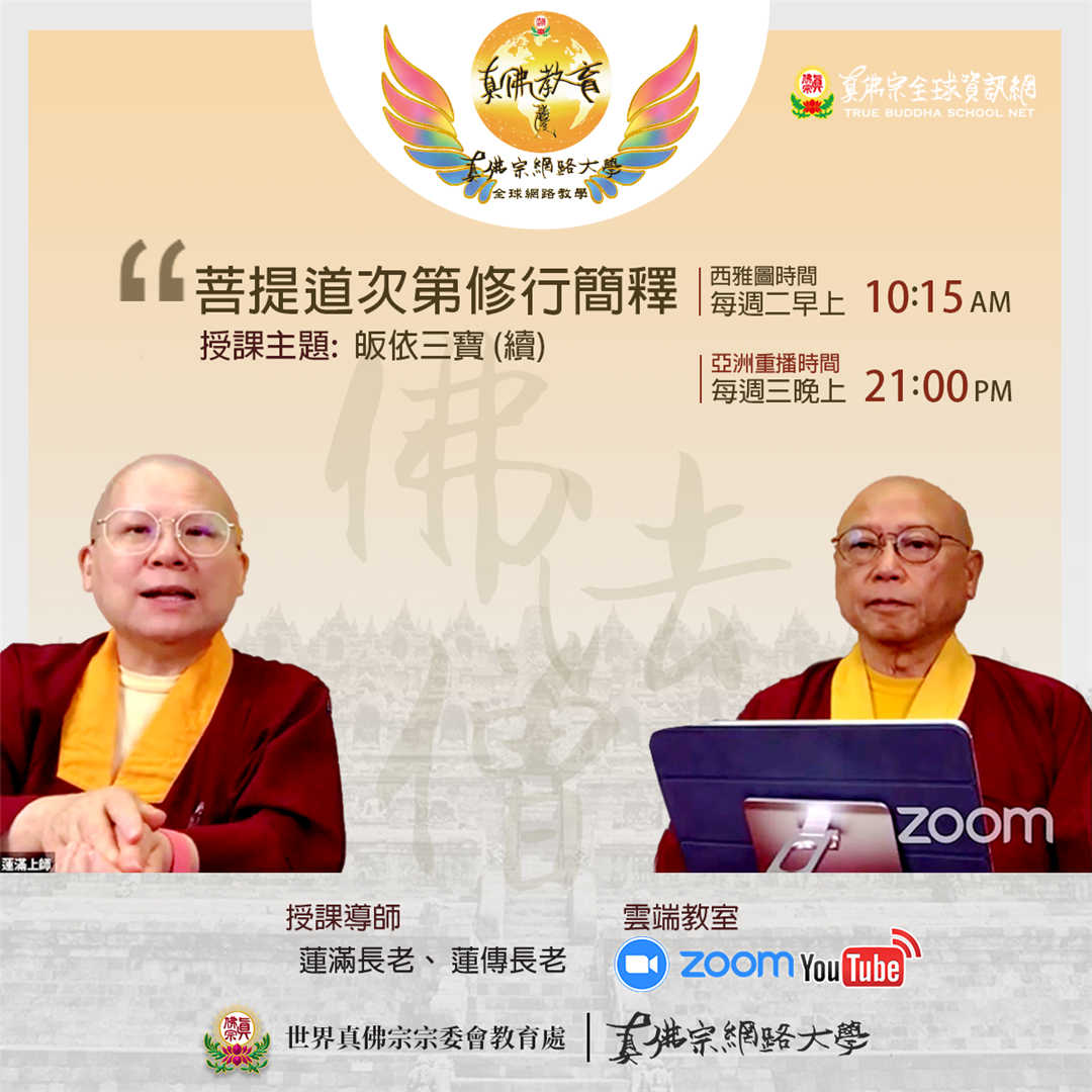 1.真佛宗網路大學第二門課《菩提道次第修行簡釋》,授課導師:長老釋蓮滿上師、長老釋蓮傳上師,有回播。