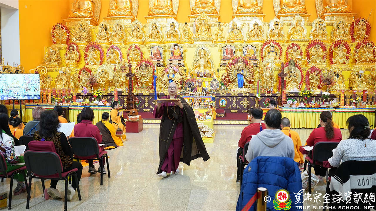 薈供後,蓮雄上師開示:師尊目前示現身體有毛病,其實應該對大家是一種當頭棒喝。因為人有肉身,自然會經歷成住壞空,所以更應該把握有限的人生及時光,努力修行及承擔菩提事業,為自己積聚功德和修行資糧。
