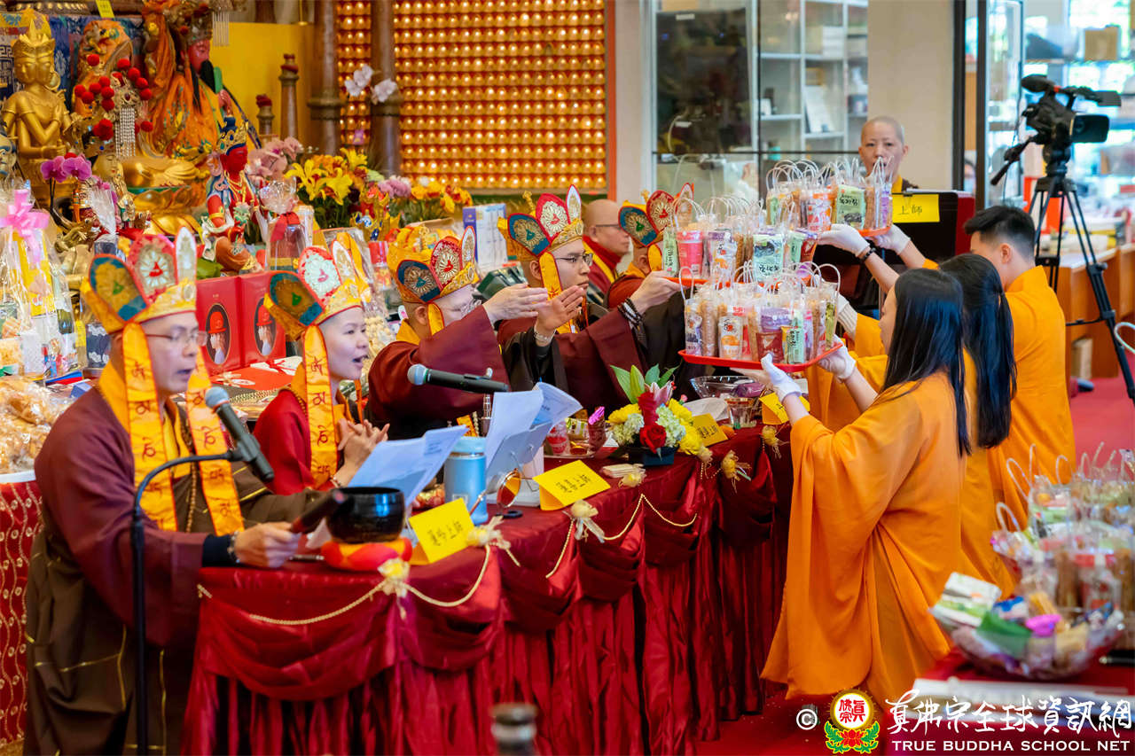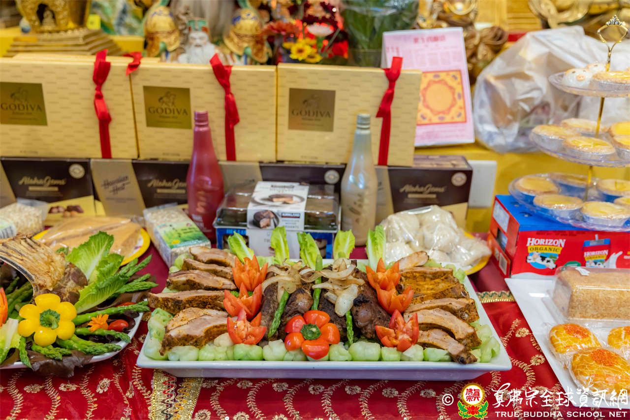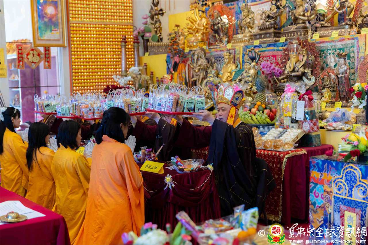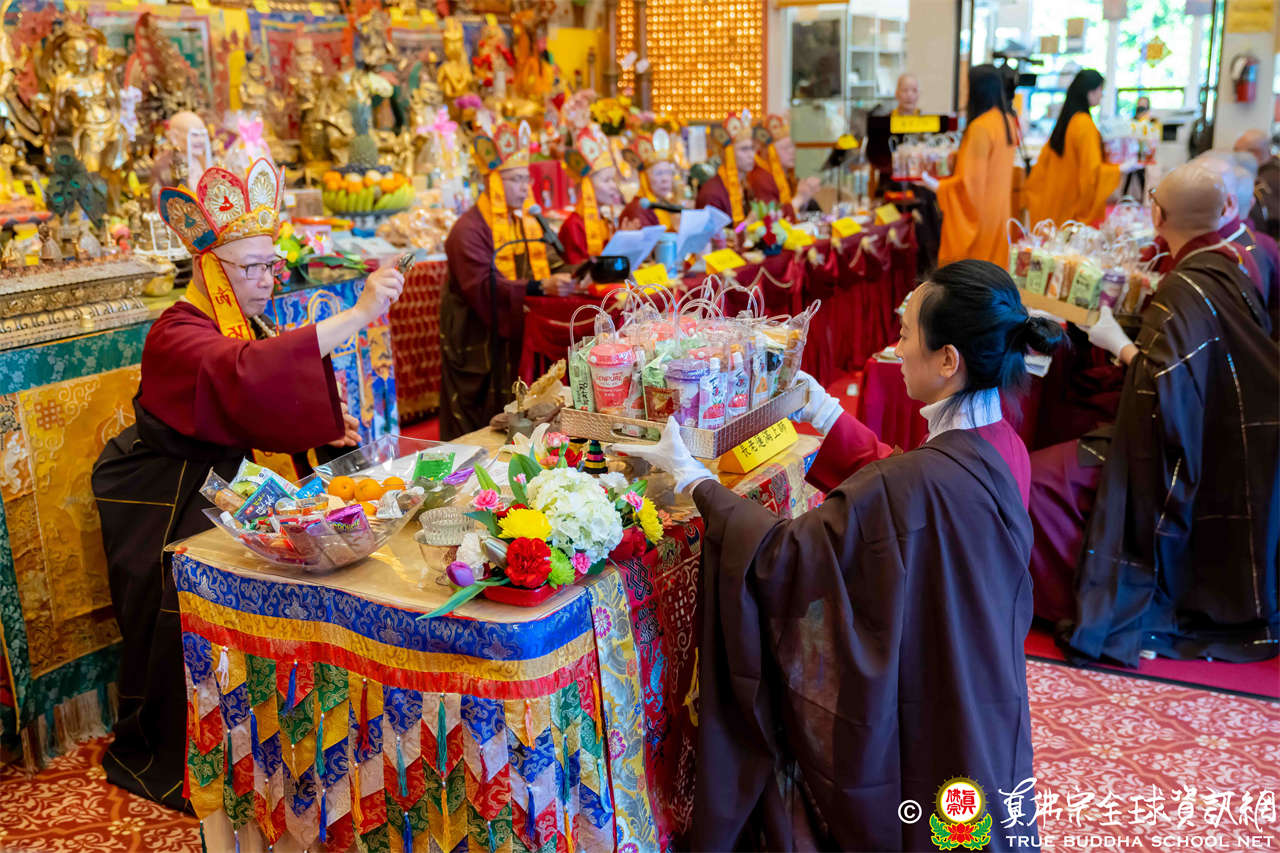 從2023年11月24日下午開始,西雅圖雷藏寺和彩虹雷藏寺的眾上師、法師及義工們,便滿懷著洋溢的熱情,在西雅圖雷藏寺緊鑼密鼓地佈置現場。他們把採購回來的鮮花、食品及禮品,帶著最虔敬的心進行設計、加工、包裝和擺放,重新裝飾成絢麗奪目、豐富多彩的貢品,供養給明日的薈供本尊瑤池金母大天尊等佛菩薩金剛護法龍天諸尊。