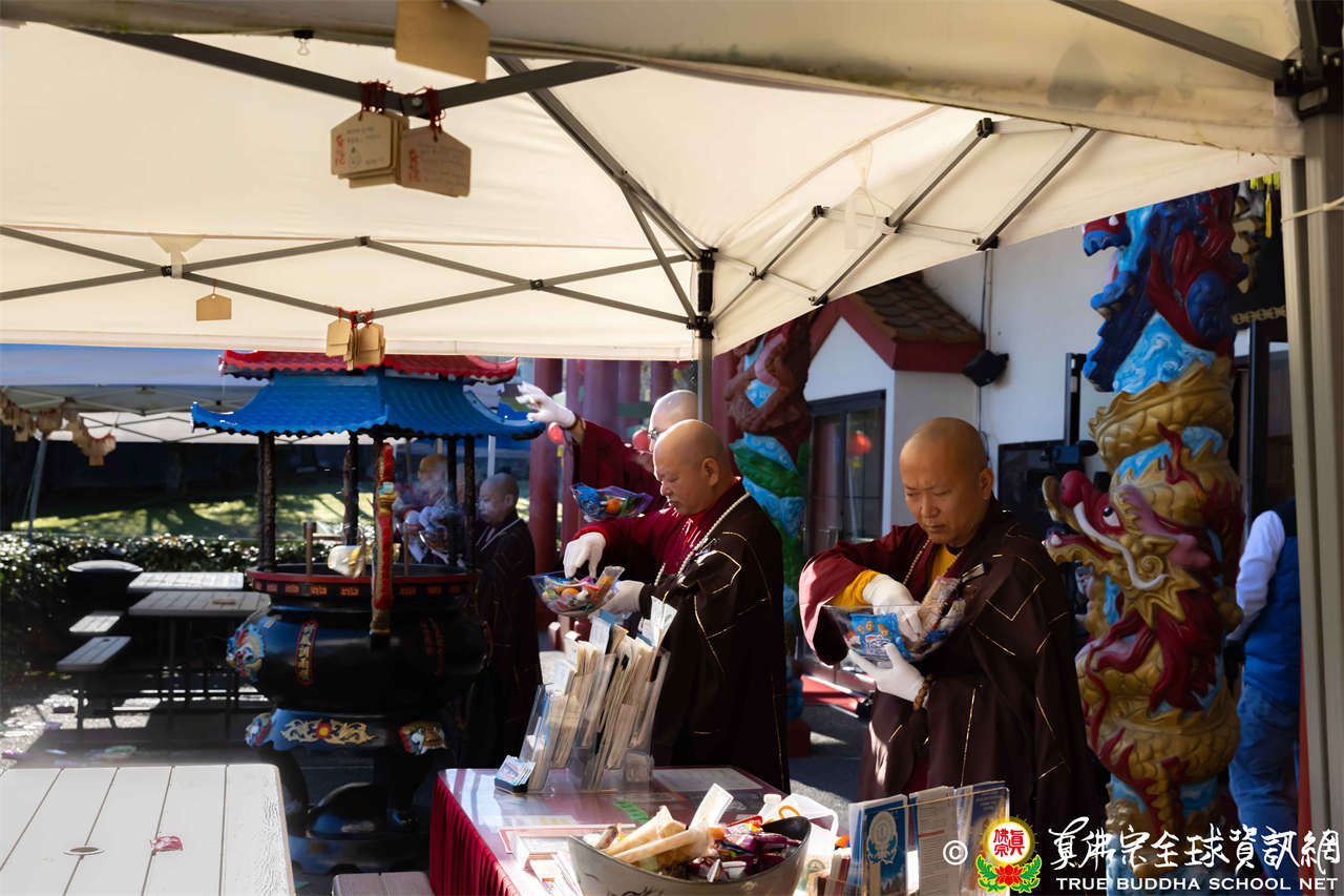 法會結束後,現場參與的弟子們面露笑容,帶著西雅圖雷藏寺和彩虹雷藏寺合贈的精美貢品,走到餐廳門前,等候師佛、師母前來一起溫馨用餐,這真是弟子們最開心、最期盼的時刻了,能親眼看到師佛、師母帶著陽光的燦爛笑容,親近的向師佛、師母致敬問候。每一位弟子誠摯的心,日日夜夜都祈願瑤池金母及諸佛菩薩金剛護法龍天護佑聖尊蓮生活佛及師母蓮香上師健康安泰、長壽住世,是為至禱!