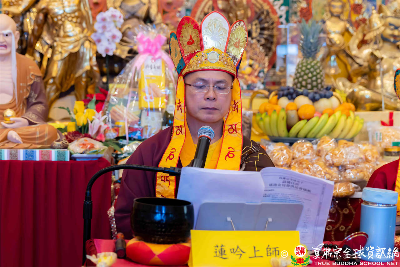 蓮滿長老致詞感恩瑤池金母放光加被,並感恩阿彌陀佛、十方三世諸佛菩薩慈悲護佑師佛與師母消災延壽、身心安康、請佛住世、長轉法輪,感謝所有參與的道場及弟子的共同發心,使得兩個場次的瑤池金母薈供法會都順利圓滿。