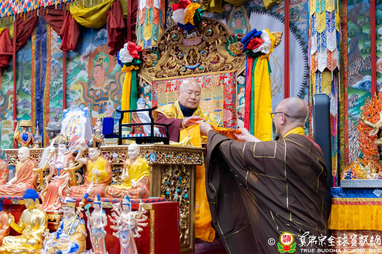 精彩的開示後,聖尊與zoom上弟子們互相問候,並為現場弟子灌頂「除蓋障菩薩」法。法會圓滿吉祥。