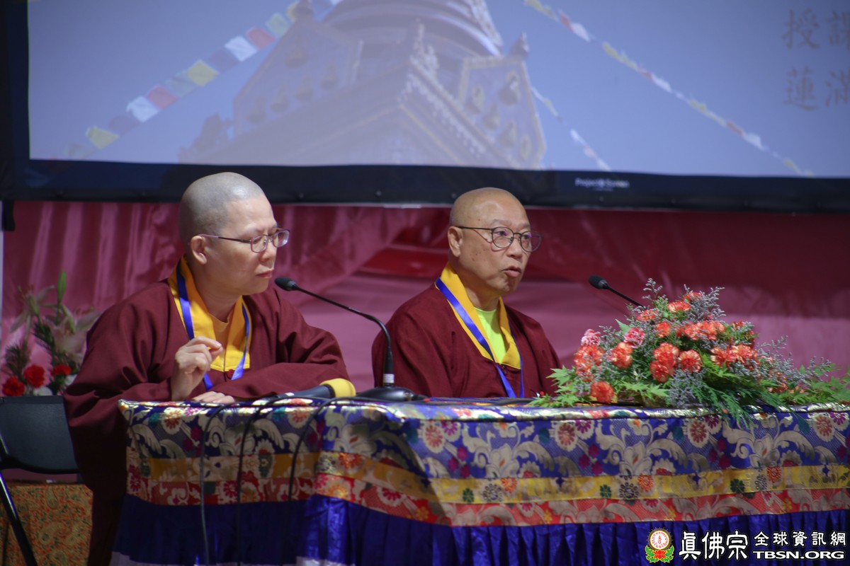 常智上師開示結束後,由蓮傳與蓮滿上師共同主講「真佛密法的實修與應用」;首先,由蓮傳上師為大眾講述。上師開示道,了解佛法真正的意義,知道苦,也要知道如何離苦。佛陀講離苦的方法,最簡單的方法就是八正見、八正道。