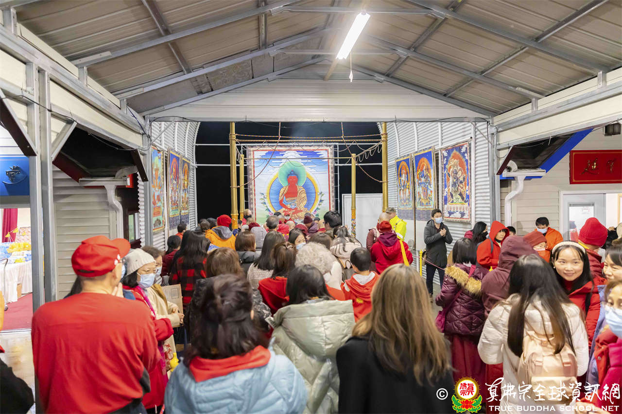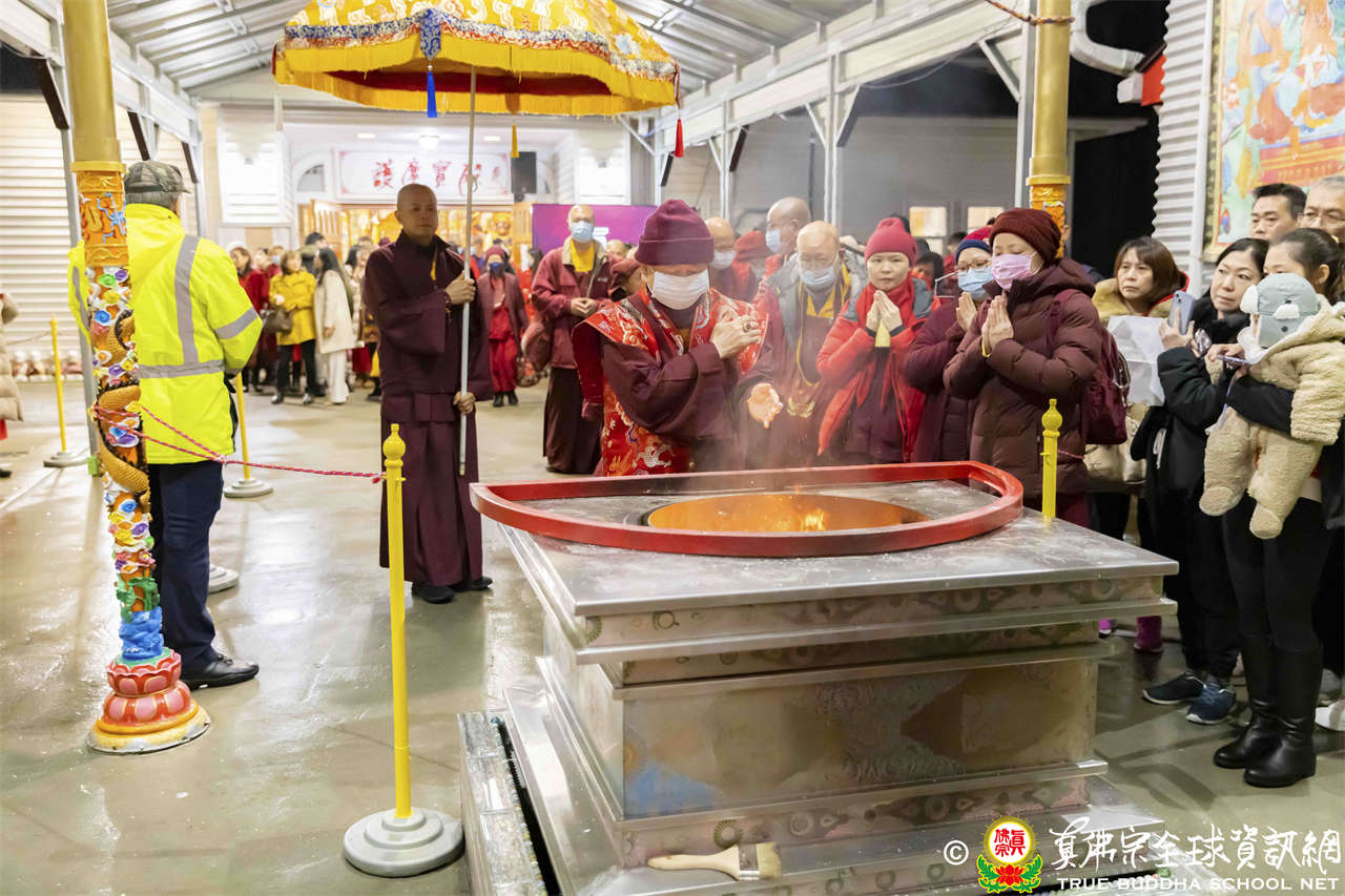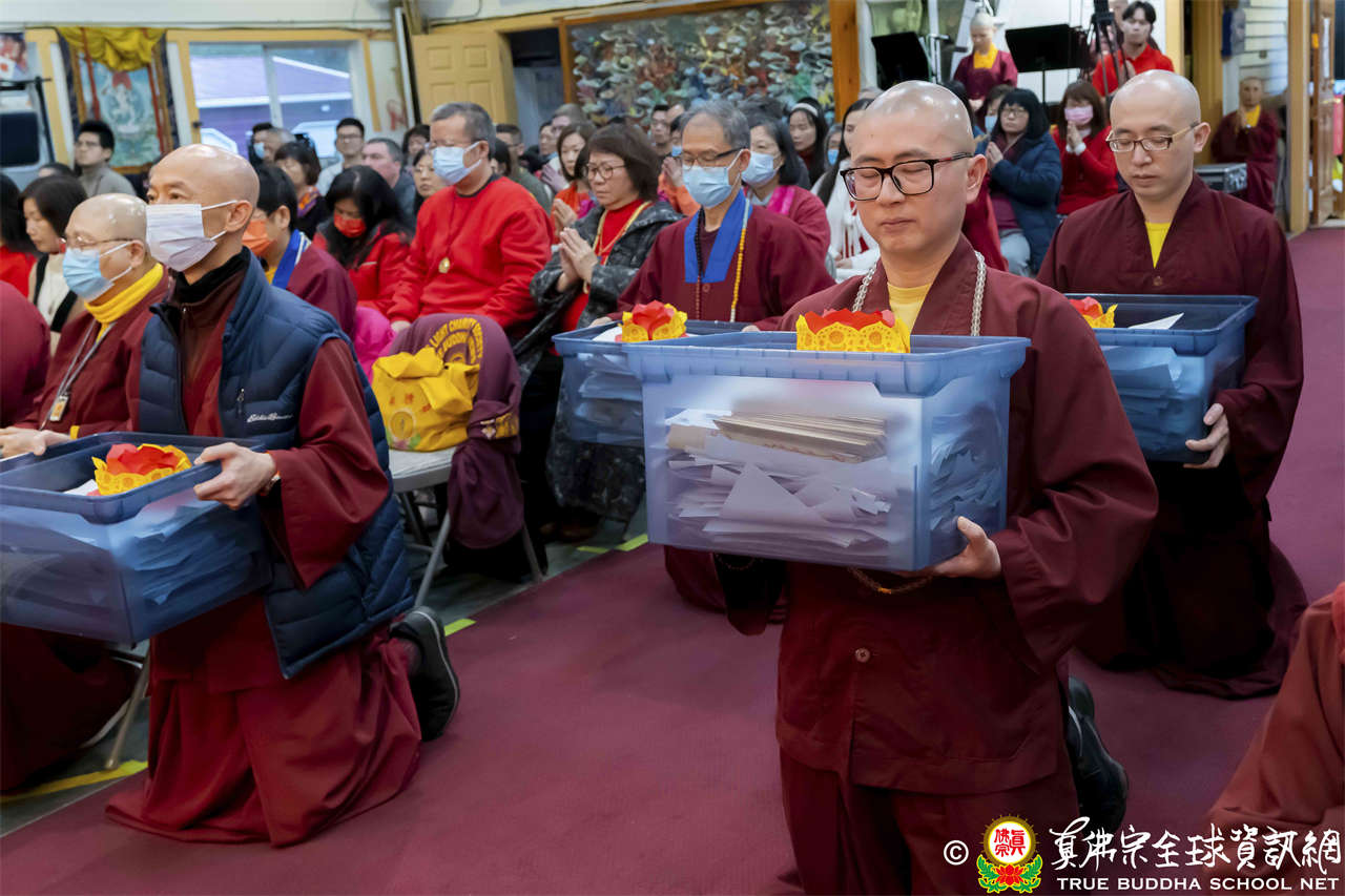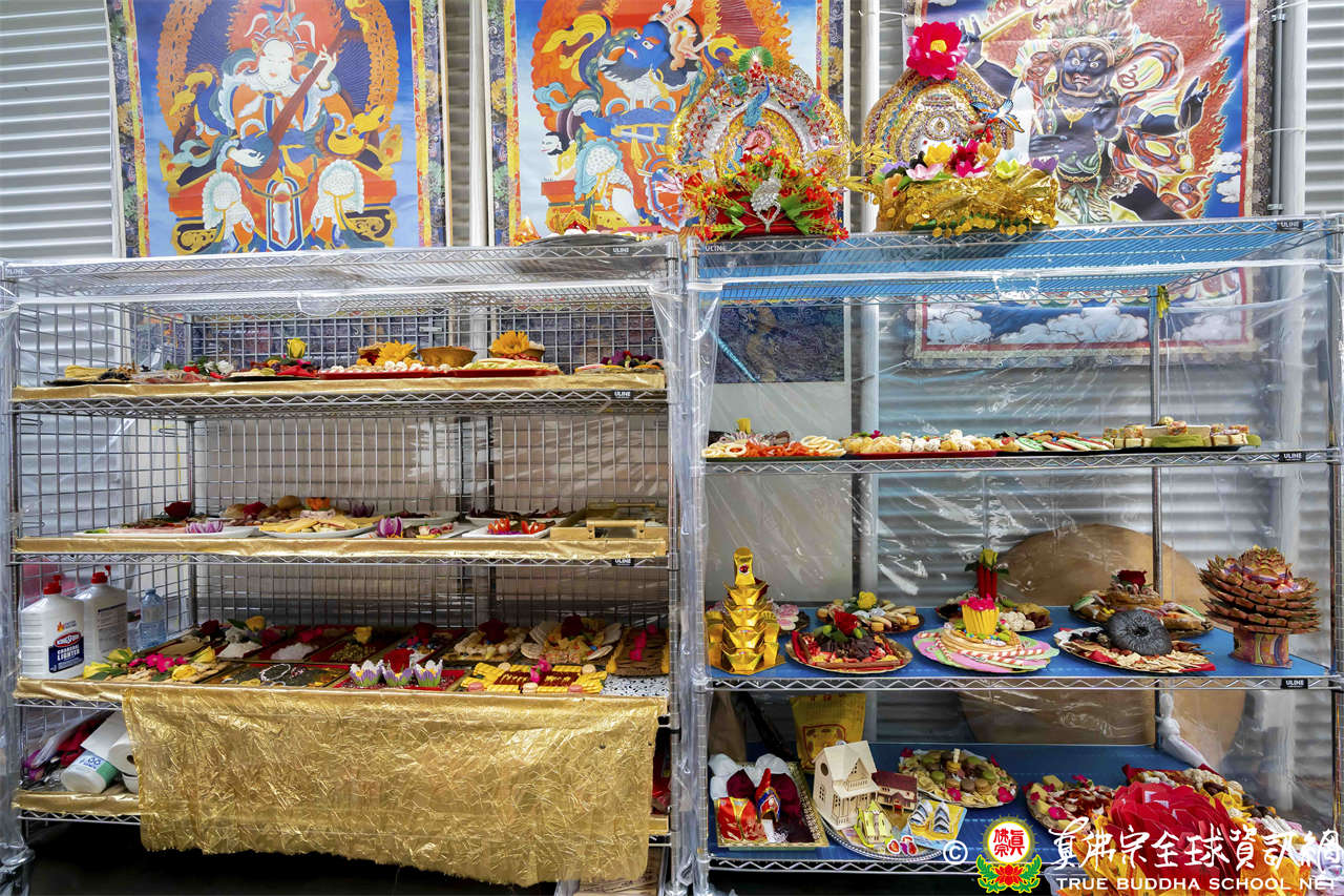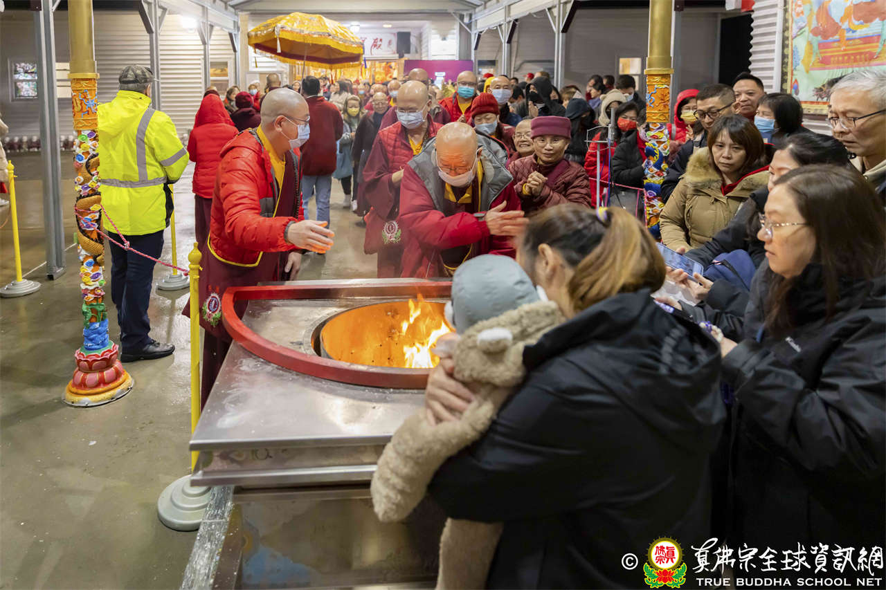 法王開示至此,護摩法會圓滿結束。接著,法王與線上的弟子打招呼,並爲現場出席者賜授阿彌陀佛法灌頂。
