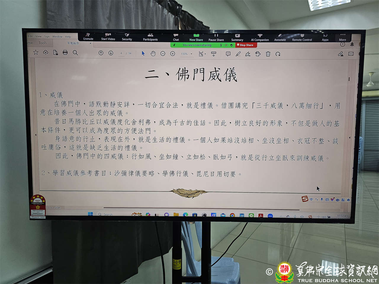 長老講授如此完整中國的禮法與典法,也讓我們了解原來禮法與典法有如此多樣性,有許多禮法是從小就耳聞的,卻不曾進一步的一一的解析,本次真的讓僧眾們學習到很多知識。