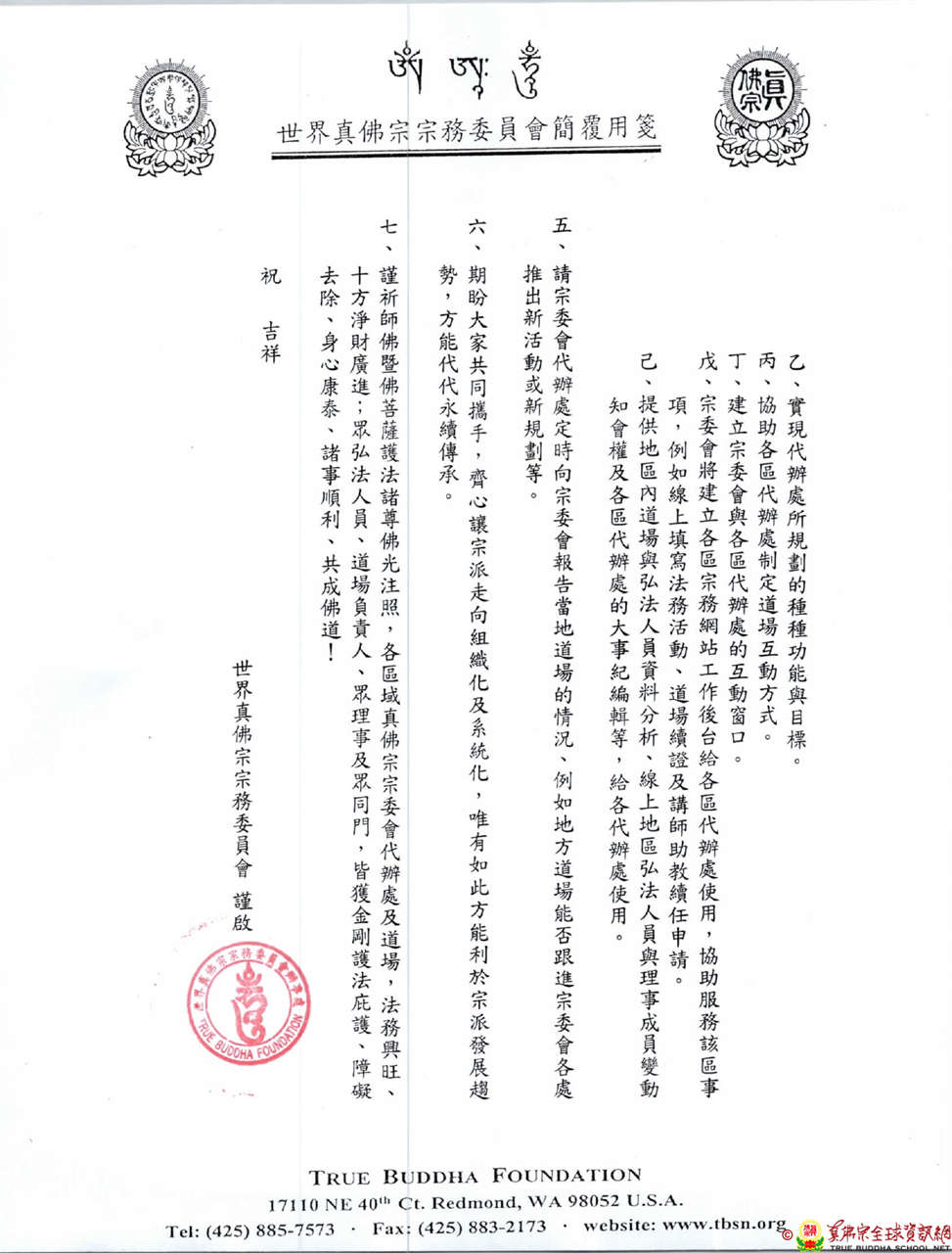 二、加拿大宗委會代辦處設立於普陀堂,由蓮花少東上師帶領。