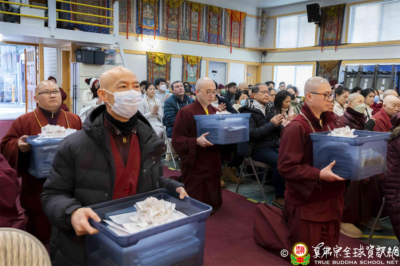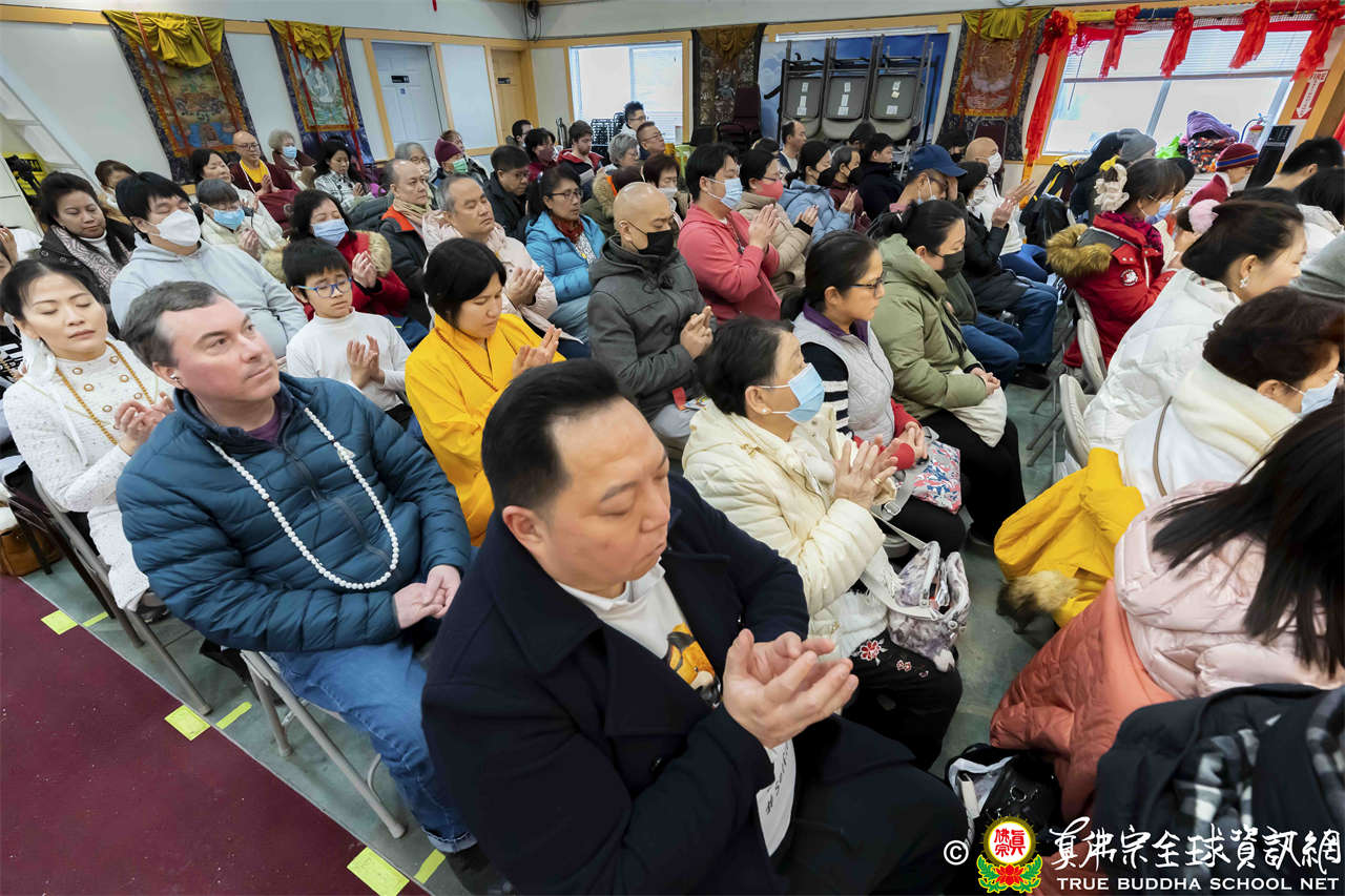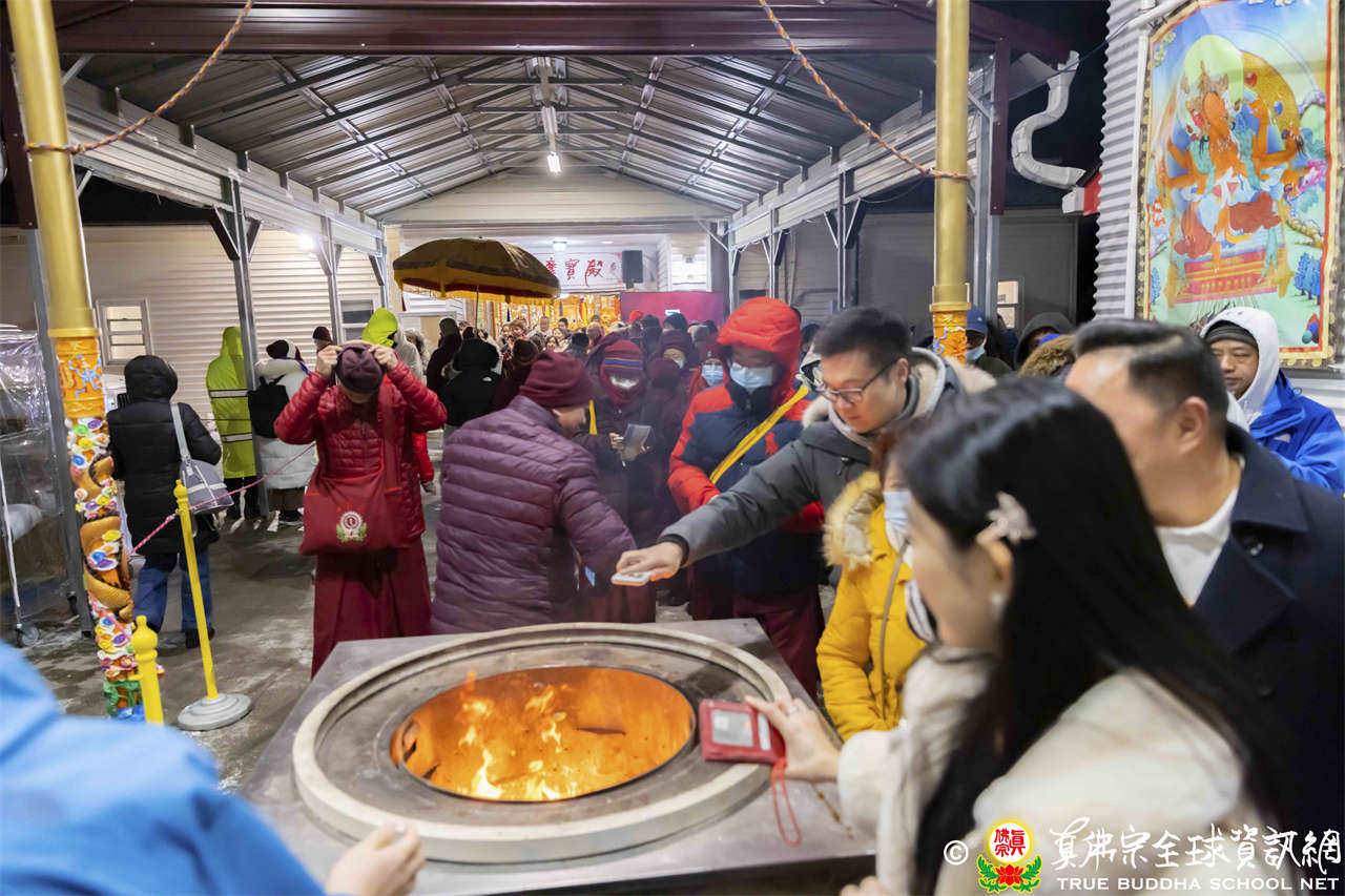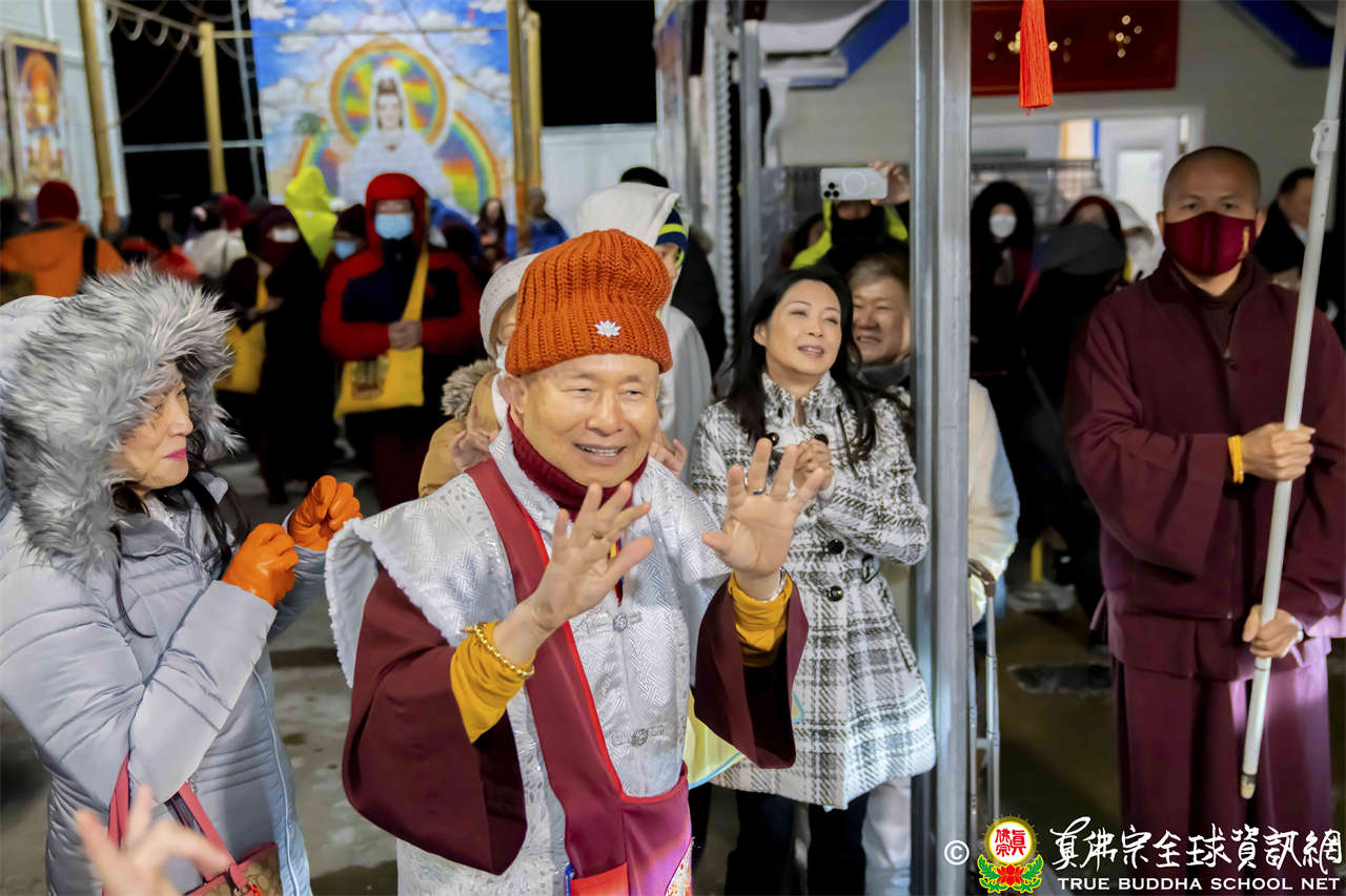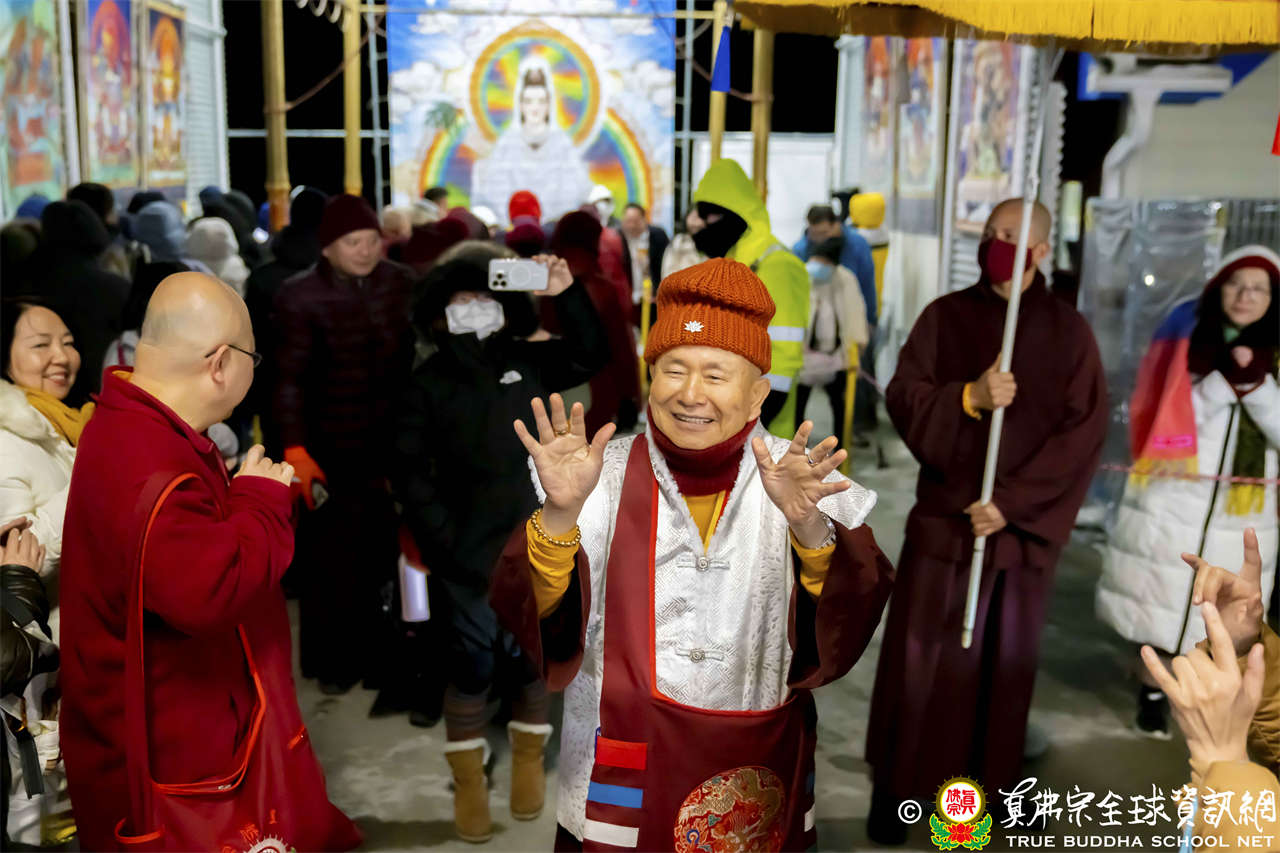 法王開示至此,護摩法會圓滿結束。接著,法王與線上的弟子打招呼,並爲現場出席者賜授觀世音菩薩法灌頂。