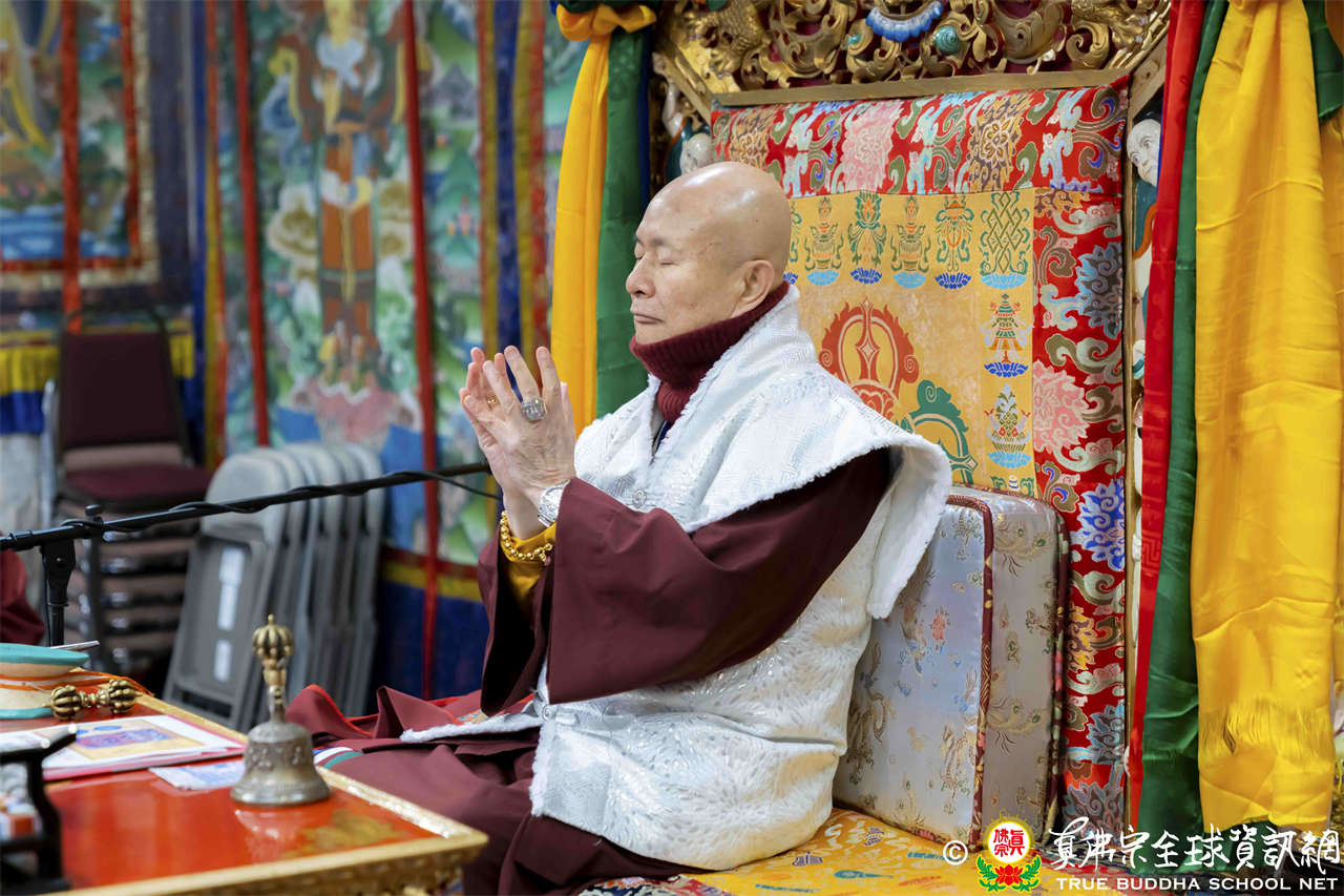 接著法王繼續講解《維摩詰經》〈不思議品第六〉:「若行生滅,是求生滅,非求法也;法名無染,若染於法,乃至涅槃,是則染著,非求法也;法無行處,若行於法,是則行處,非求法也;法無取捨,若取捨法,是則取捨,非求法也;法無處所,若著處所,是則著處,非求法也;法名無相,若隨相識,是則求相,非求法也;法不可住,若住於法,是則住法,非求法也;法不可見聞覺知,若行見聞覺知,是則見聞覺知,非求法也。」
