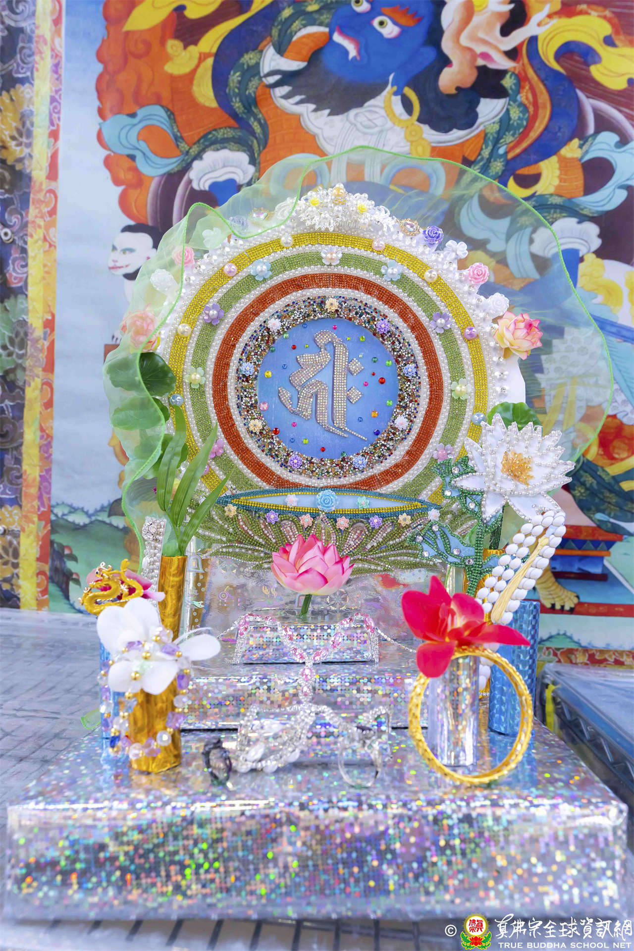 接著法王介紹法會主尊觀世音菩薩。法王說,只要是佛教徒,都知道觀音彌陀。中國的比丘見面就稱唸「阿彌陀佛」;比丘尼見面則稱唸「觀世音菩薩」。觀世音菩薩,廣大靈感、千百億化身、千處祈求千處現,苦海常作渡人舟。觀世音菩薩楊枝净水,一灑就是清淨;二灑自性清淨;三灑一切自性清淨,也就是所有衆生全部清淨。觀世音菩薩有很大的力量,祂也是如來,因爲慈悲衆生,才顯現觀世音菩薩,所以不可以忽視,尤其是奉觀世音菩薩為主尊的行者,更不能忽視。