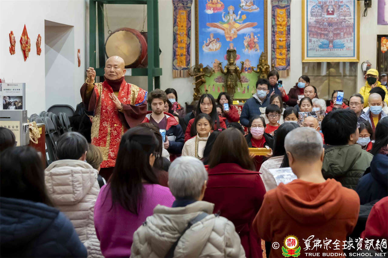 2024年1月20日,氣候冷冽,飄著小雨,西雅圖雷藏寺裡四衆們暖融融的引頸期盼聖尊蓮生活佛盧勝彥到臨,主持阿彌陀佛本尊法同修。