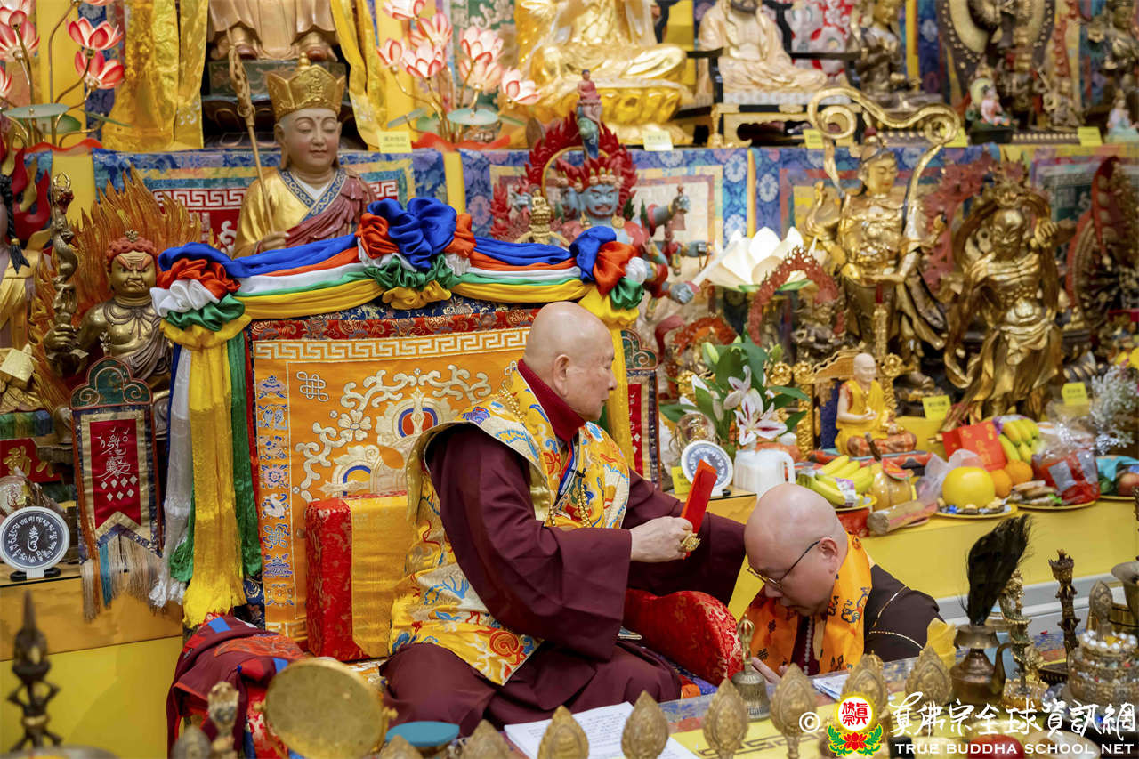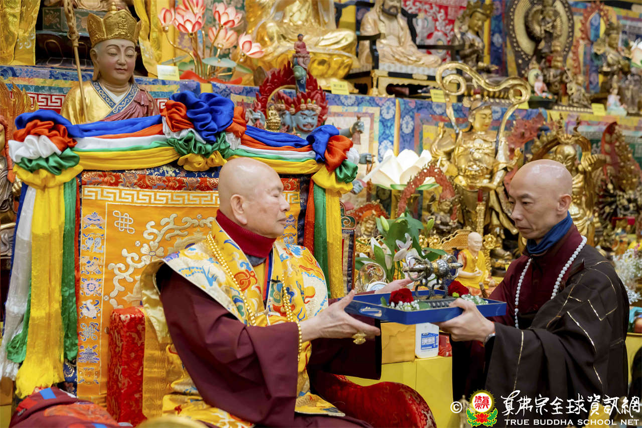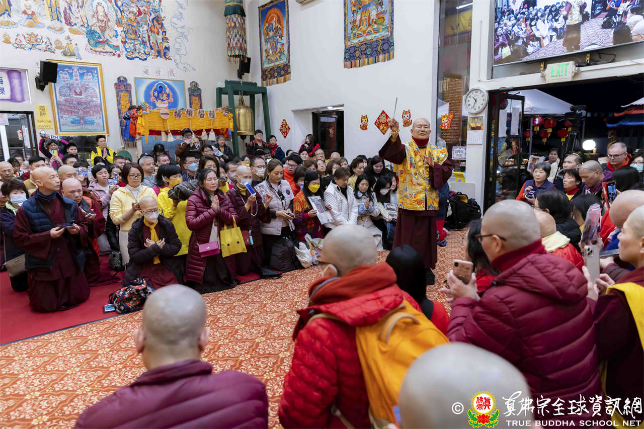 同修後, 西雅圖雷藏寺住持蓮吟上師及彩虹雷藏寺住持蓮彥上師率眾向聖尊請法,恭請聖尊主持2024年新春大法會——2月24日觀世音菩薩大法會暨傳授七眼佛母天眼通秘密法、2月25日聖觀音第一富豪法護摩大法會。