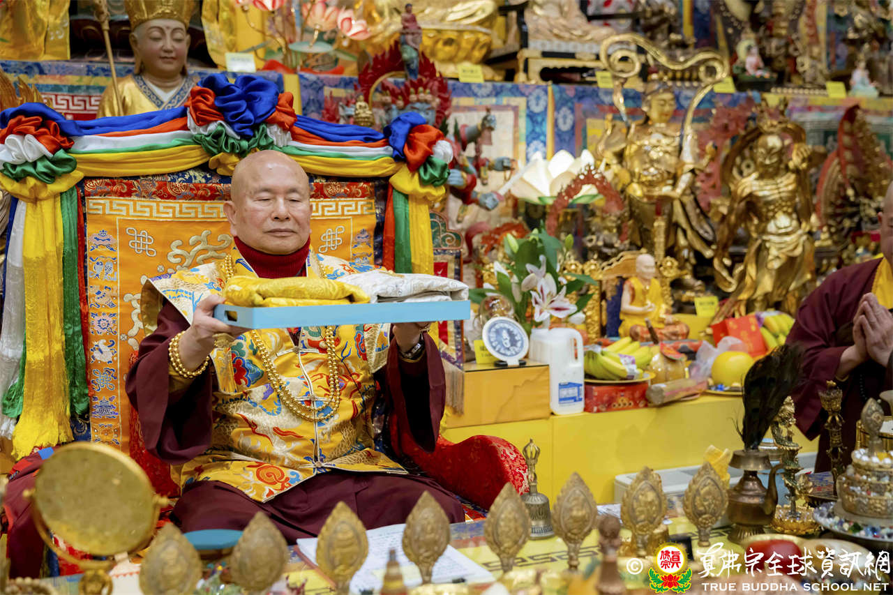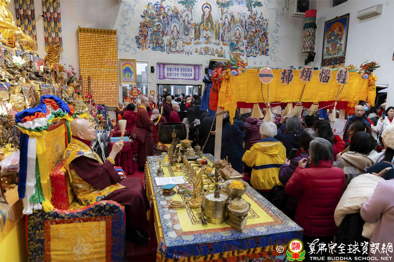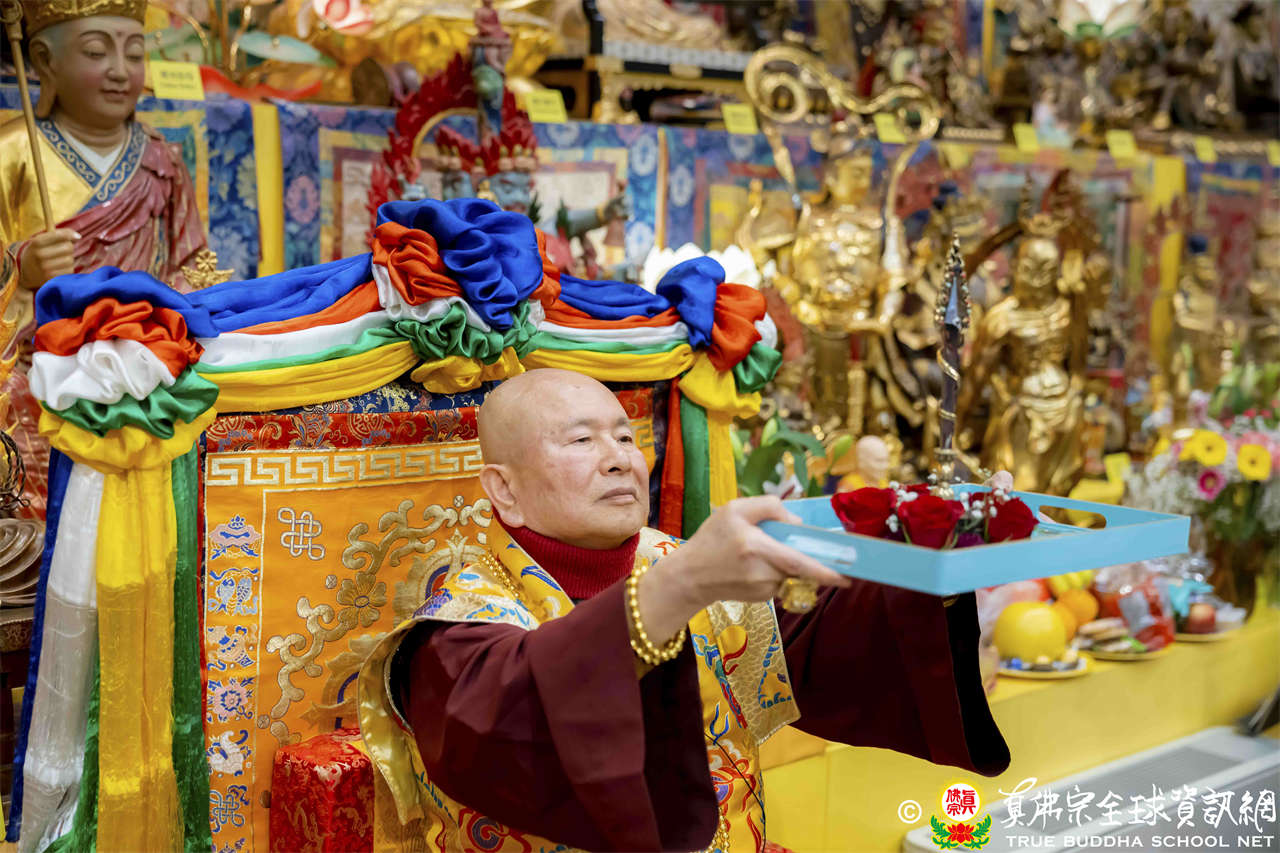 同修後, 西雅圖雷藏寺住持蓮吟上師及彩虹雷藏寺住持蓮彥上師率眾向聖尊請法,恭請聖尊主持2024年新春大法會——2月24日觀世音菩薩大法會暨傳授七眼佛母天眼通秘密法、2月25日聖觀音第一富豪法護摩大法會。